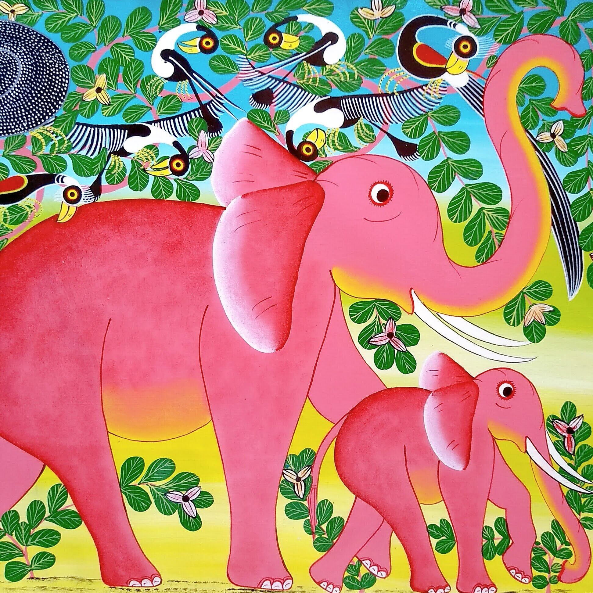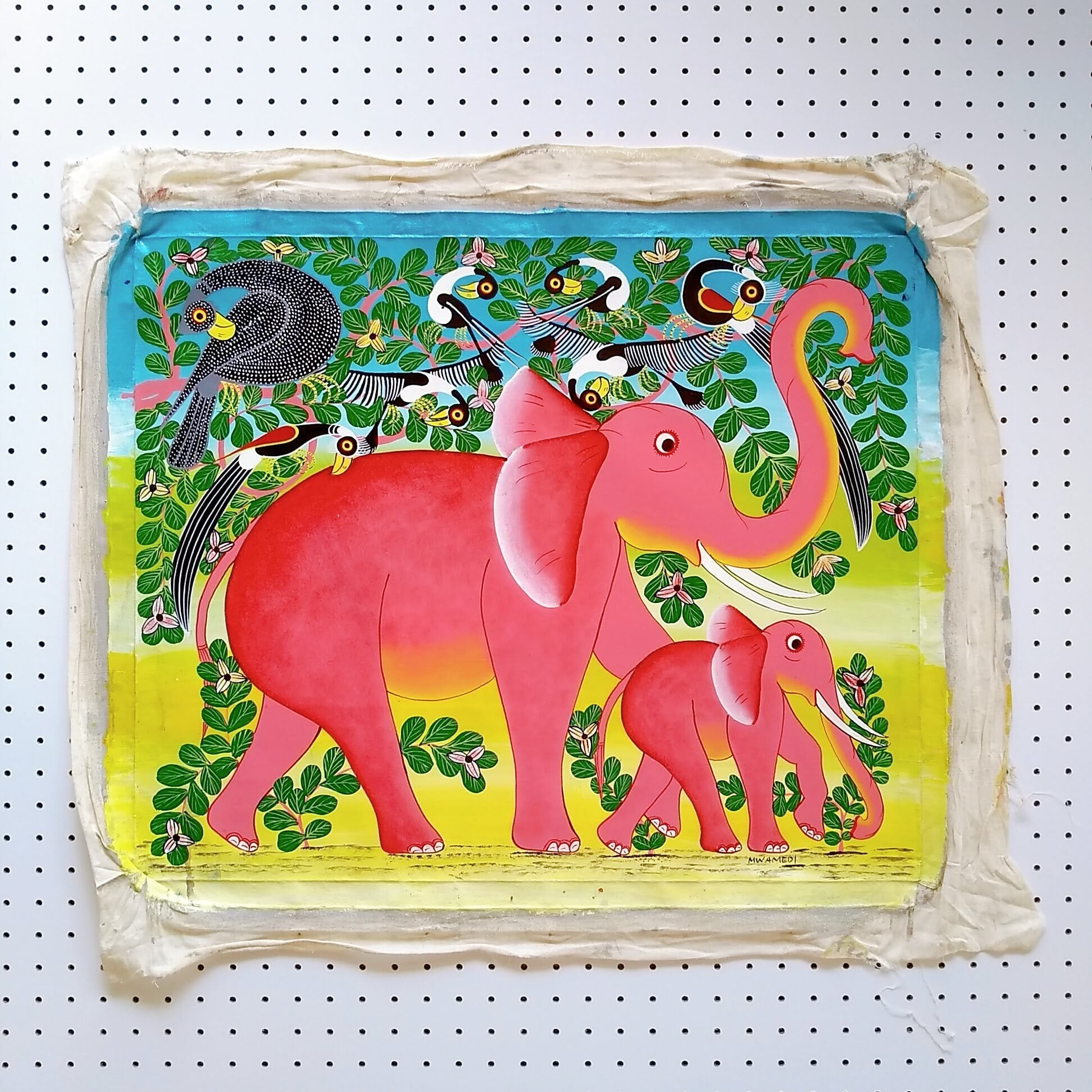 『 Tembo family in pink 』 Medium-Tingatinga by Mwamedi 50*60cm