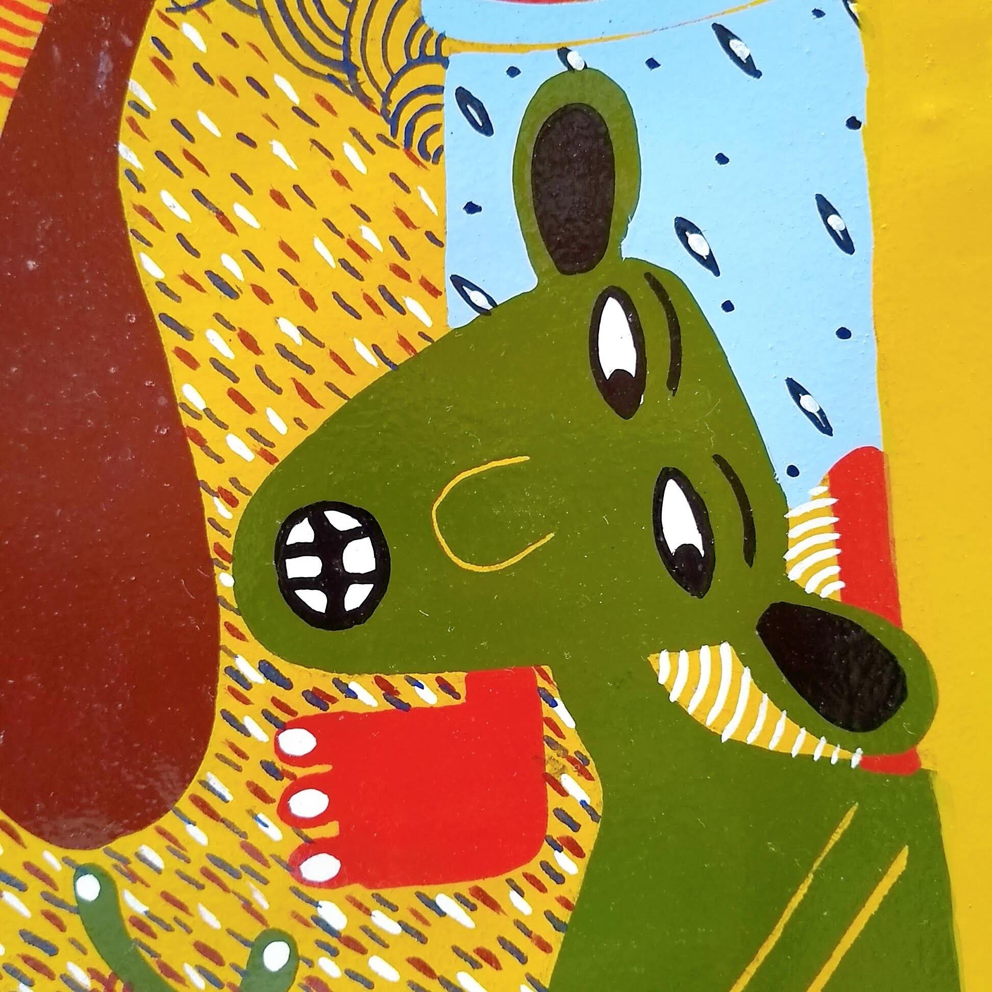 東アフリカ、タンザニアのポップアートです。主にアフリカの動物や植物、人々や風景、精霊などがモチーフとなり、エナメルペンキで描かれています。名前は創始者のエドワード・サイディ・ティンガティンガの名に因んでいます。