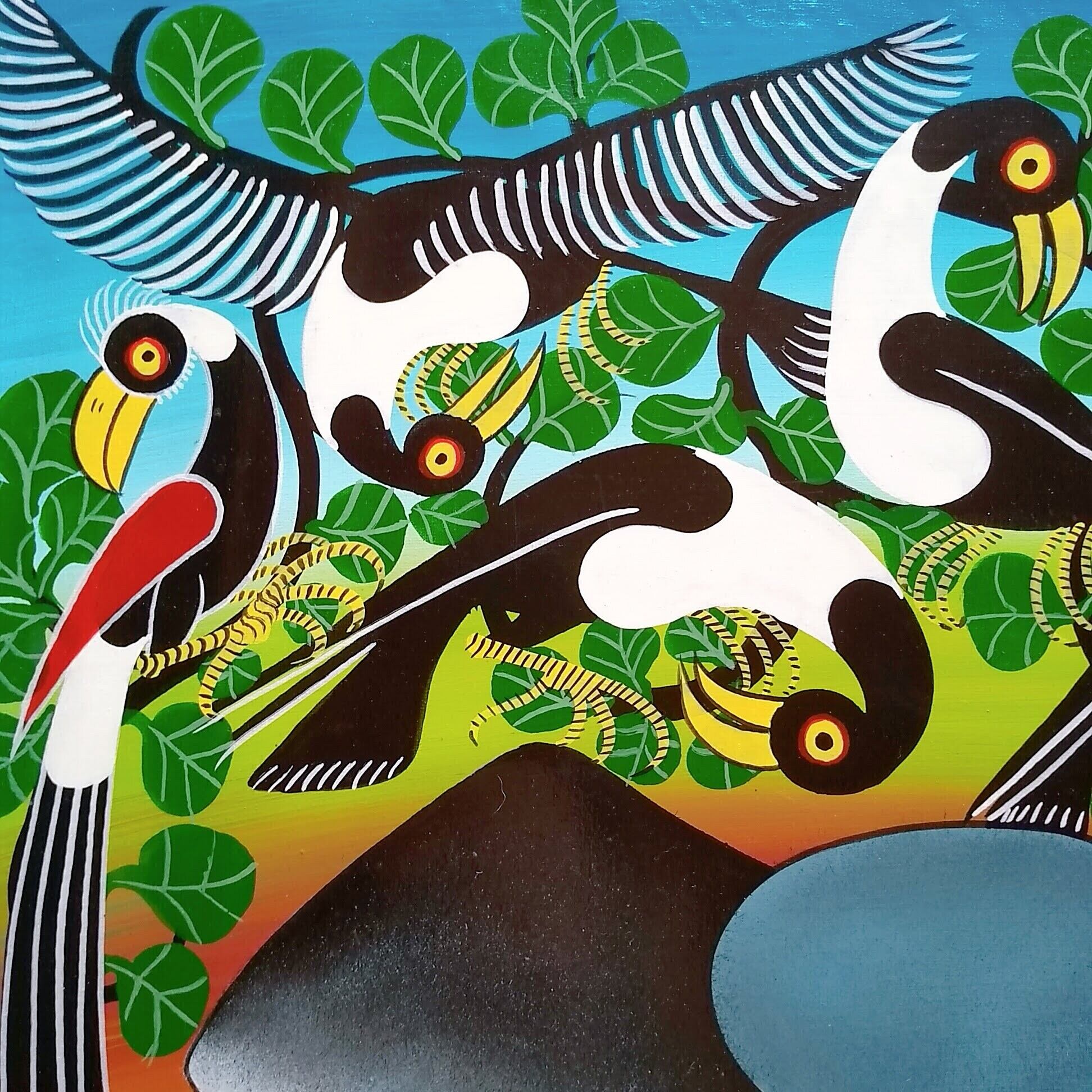 東アフリカ、タンザニアのポップアートです。主にアフリカの動物や植物、人々や風景、精霊などがモチーフとなり、エナメルペンキで描かれています。名前は創始者のエドワード・サイディ・ティンガティンガの名に因んでいます。
