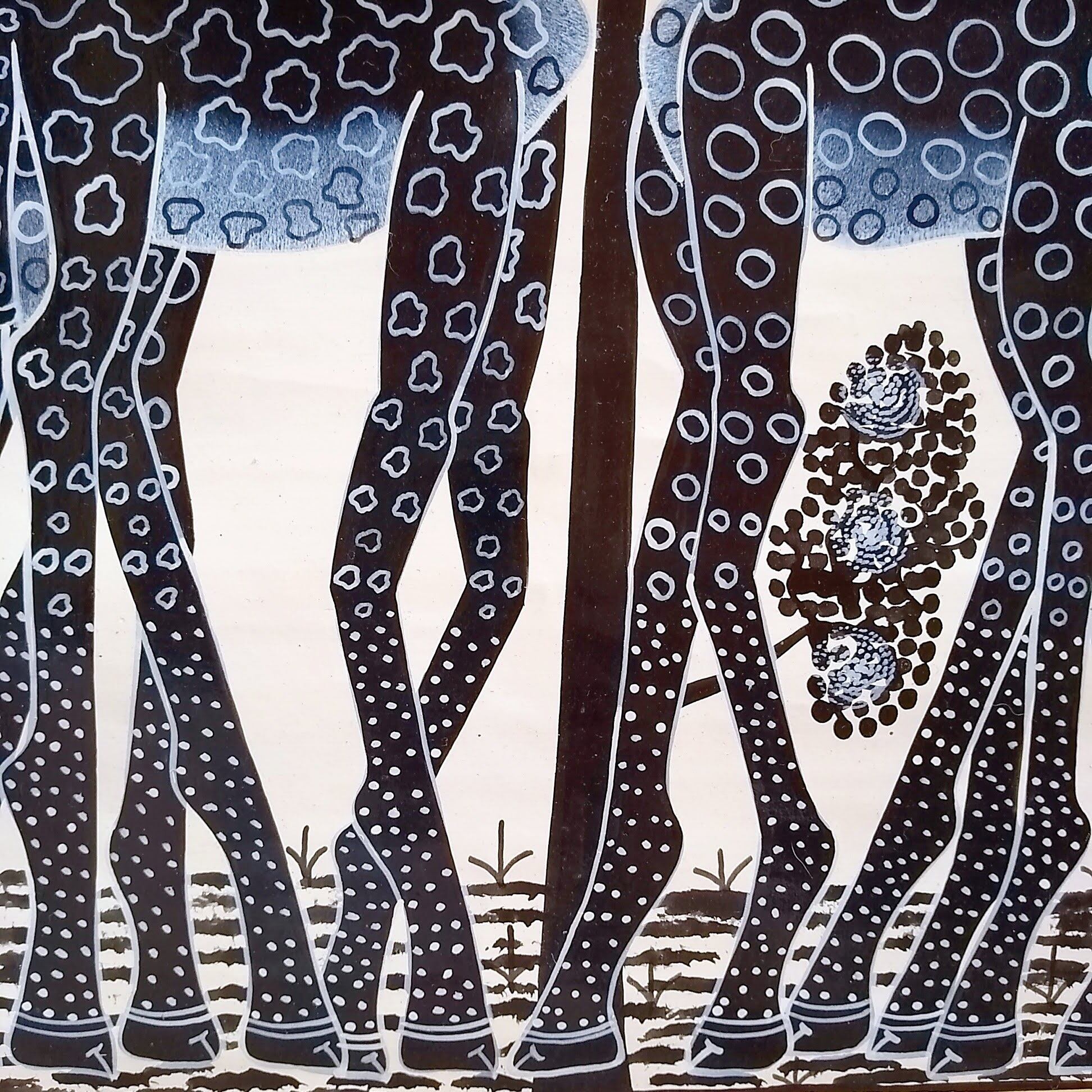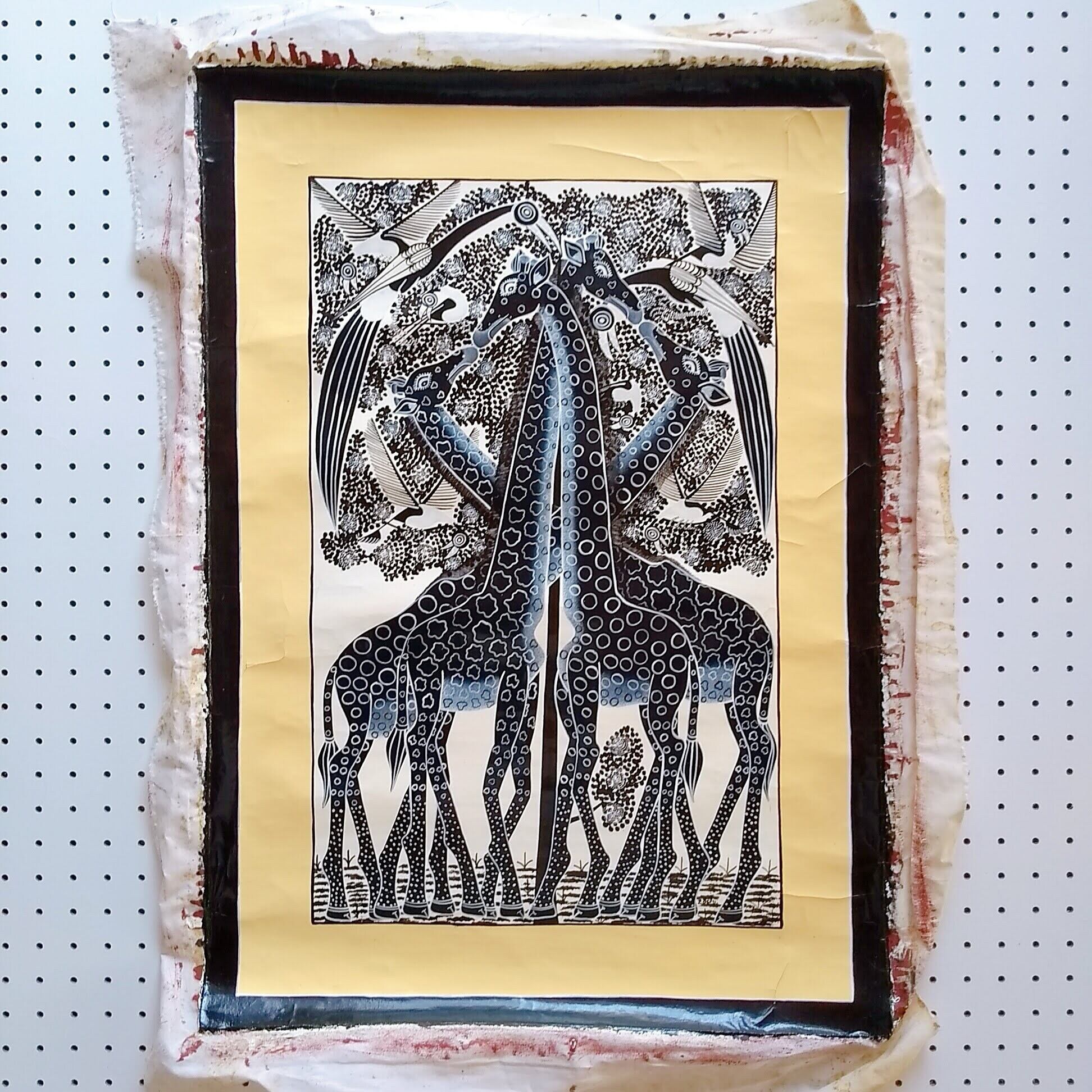 『 Twiga four - black and white 』 Medium-Tingatinga by Zachi 49*69cm