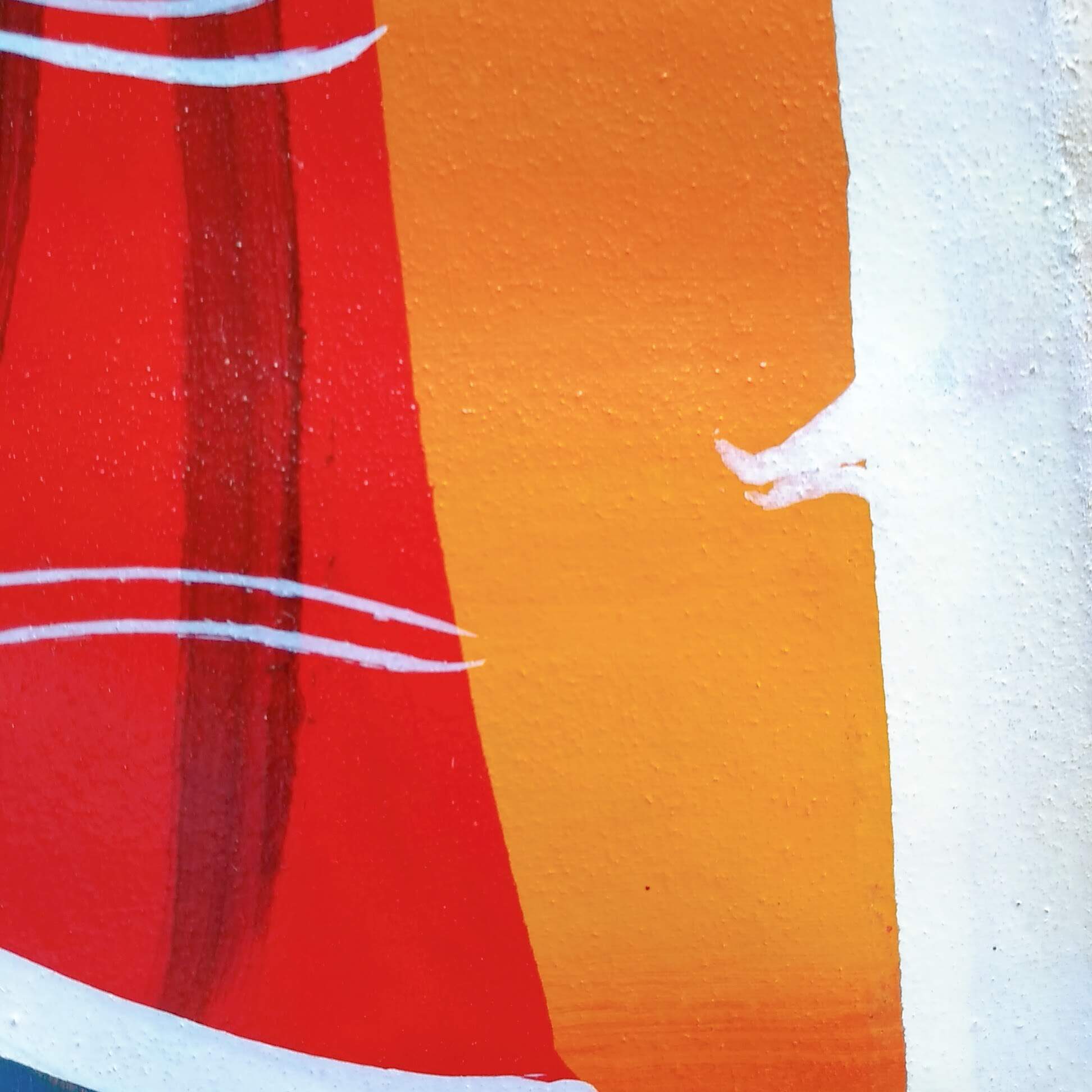 ※ なるべく状態の良いものを仕入れていますが、色ムラ、ペンキの跳ね、ひび割れやしわなどがある場合がございます。赤道直下の太陽の下で創作活動に励む作家たちに思いを馳せて、味わいとして鑑賞していただけると幸いです。