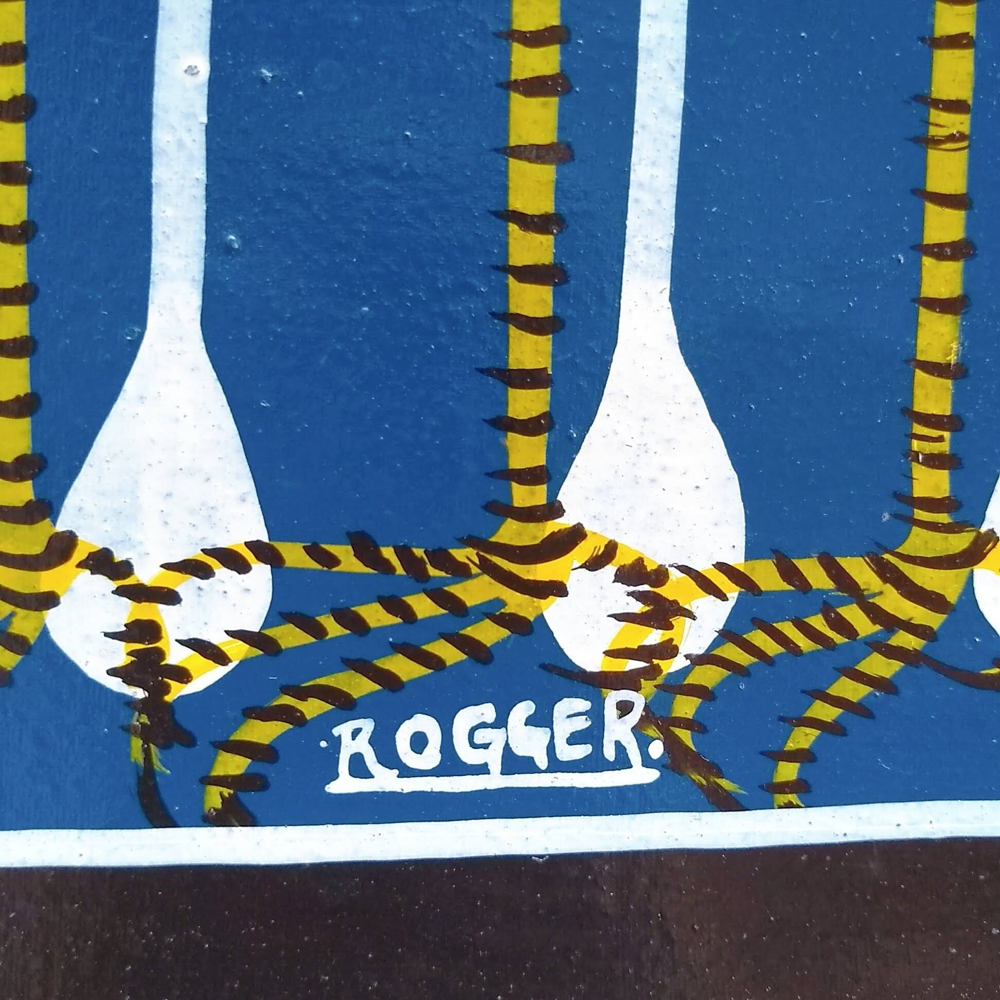 ※ なるべく状態の良いものを仕入れていますが、色ムラ、ペンキの跳ね、ひび割れやしわなどがある場合がございます。赤道直下の太陽の下で創作活動に励む作家たちに思いを馳せて、味わいとして鑑賞していただけると幸いです。