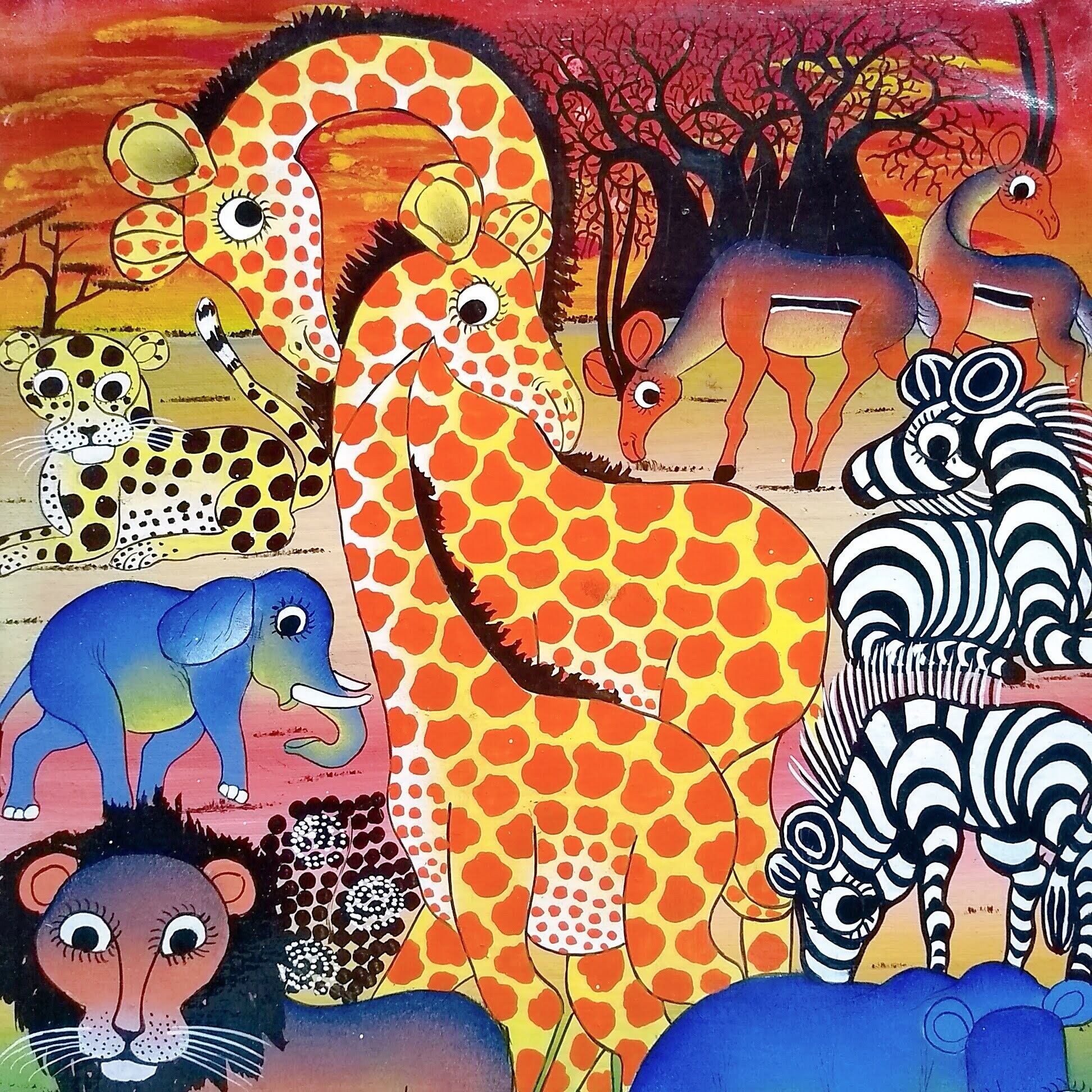 東アフリカ、タンザニアのポップアートです。主にアフリカの動物や植物、人々や風景、精霊などがモチーフとなり、エナメルペンキで描かれています。名前は創始者のエドワード・サイディ・ティンガティンガの名に因んでいます。