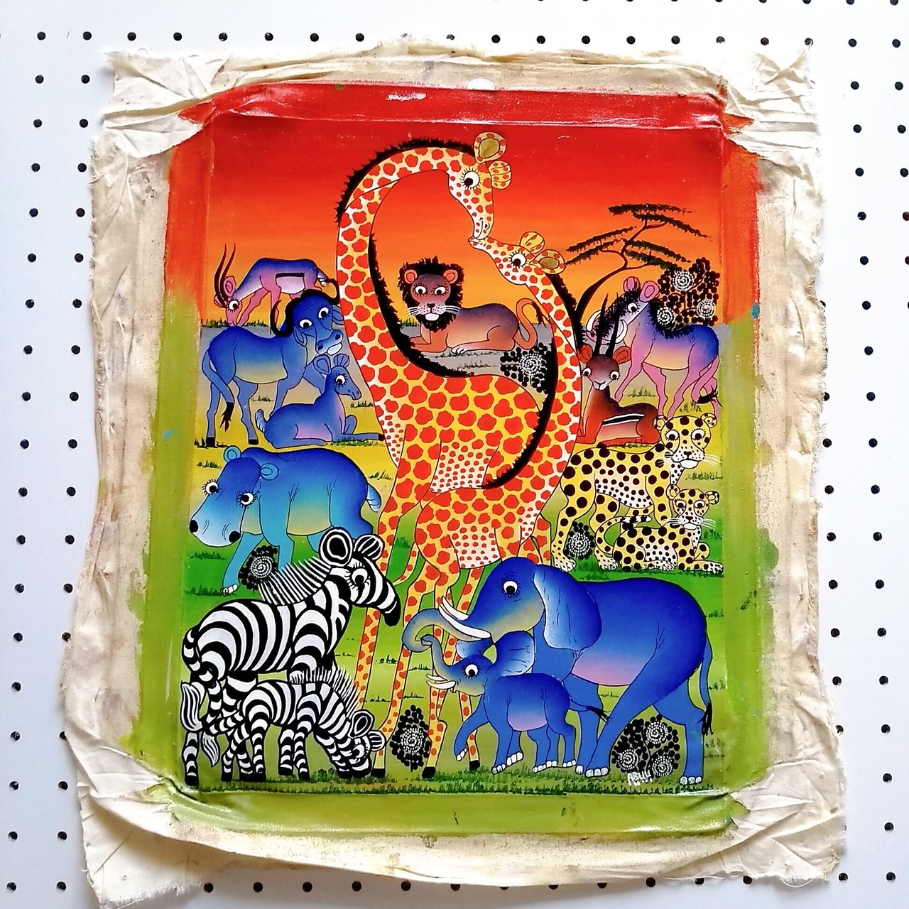 『 Savanna Animals 』 Medium-Tingatinga by Abuu 28*35cm