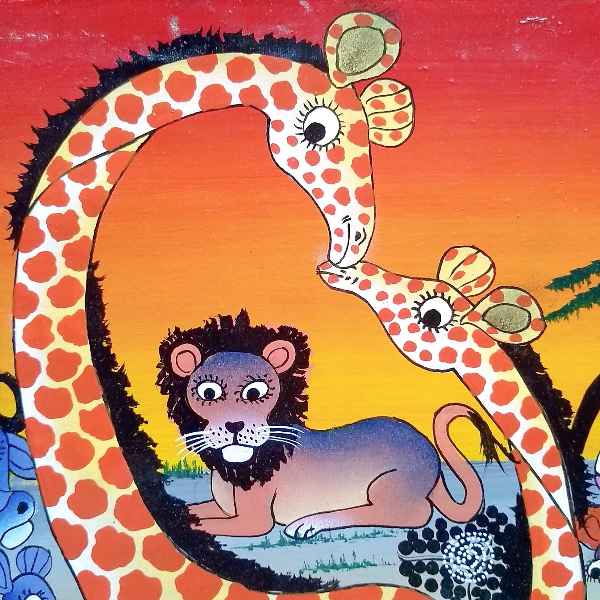 東アフリカ、タンザニアのポップアートです。主にアフリカの動物や植物、人々や風景、精霊などがモチーフとなり、エナメルペンキで描かれています。名前は創始者のエドワード・サイディ・ティンガティンガの名に因んでいます。
