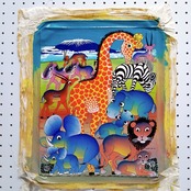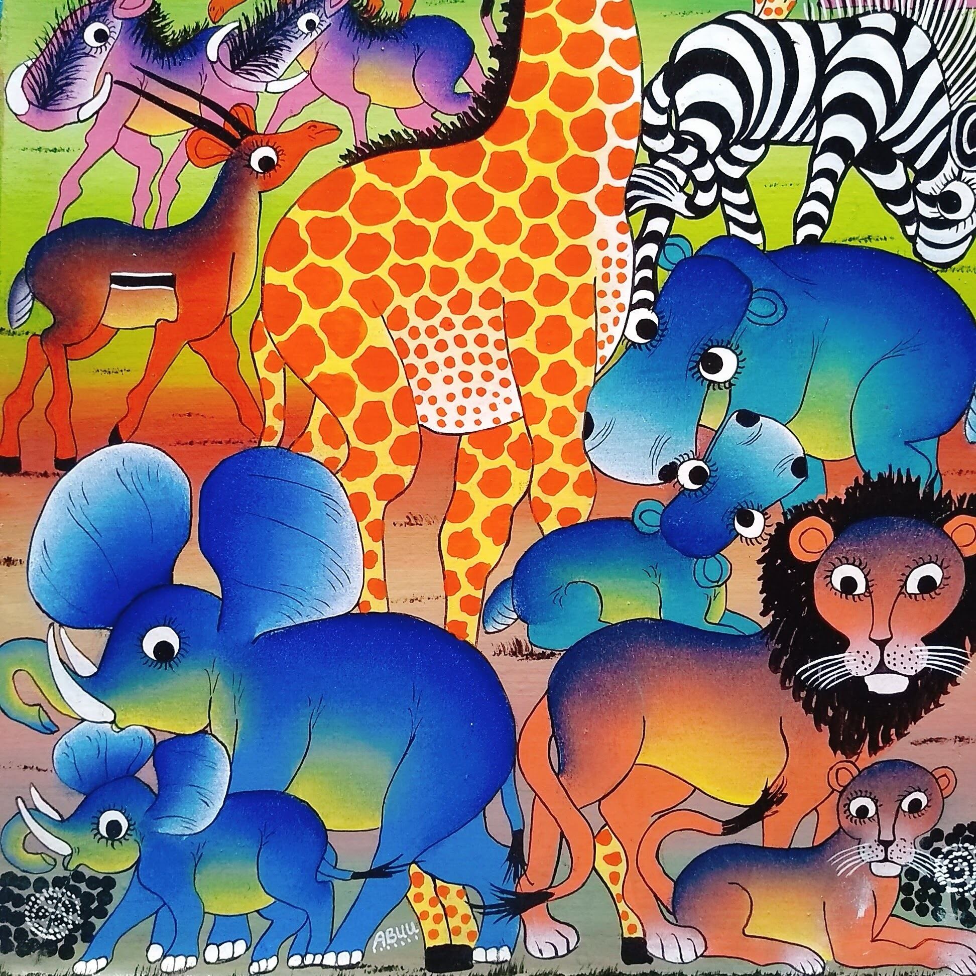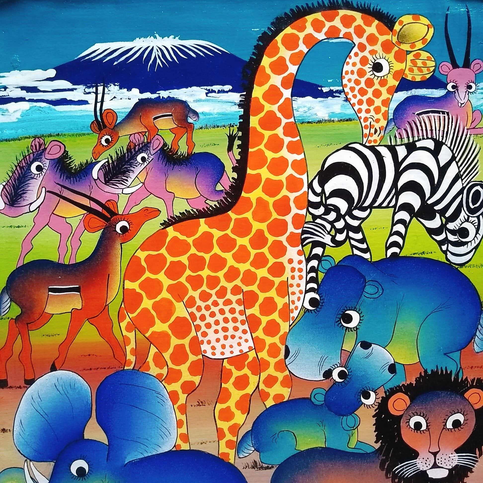 東アフリカ、タンザニアのポップアートです。主にアフリカの動物や植物、人々や風景、精霊などがモチーフとなり、エナメルペンキで描かれています。名前は創始者のエドワード・サイディ・ティンガティンガの名に因んでいます。