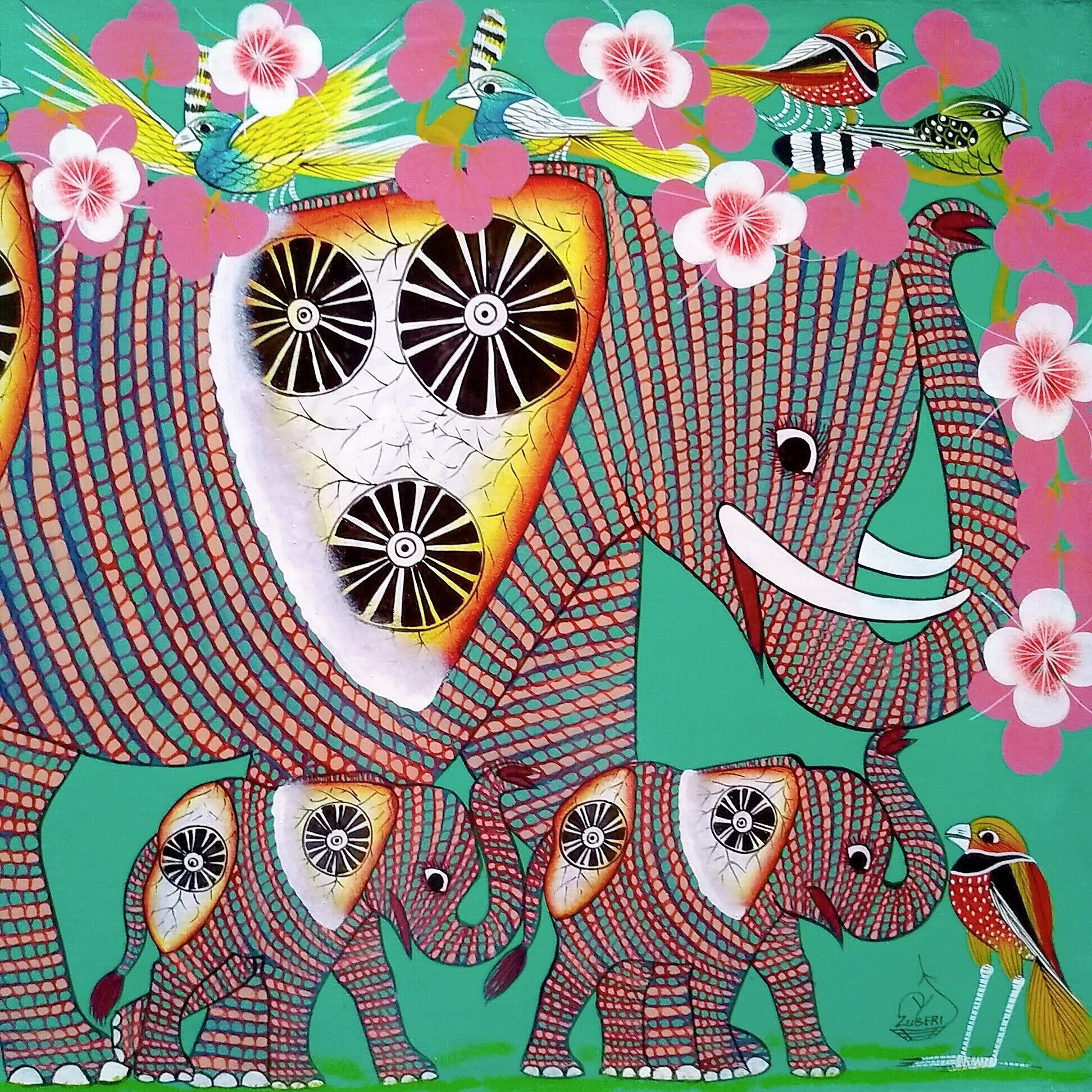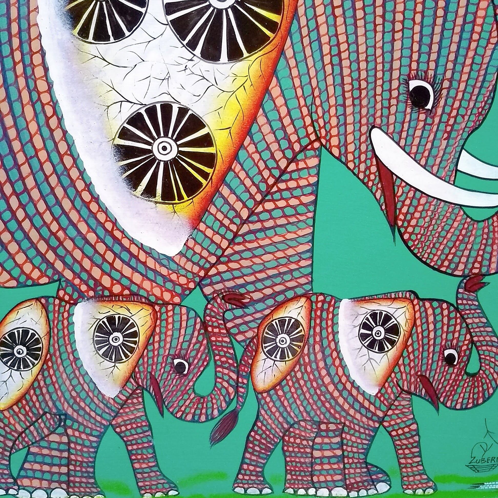 『 Colorful tembo family 』 Big-Tingatinga by Zuberi 70*50cm