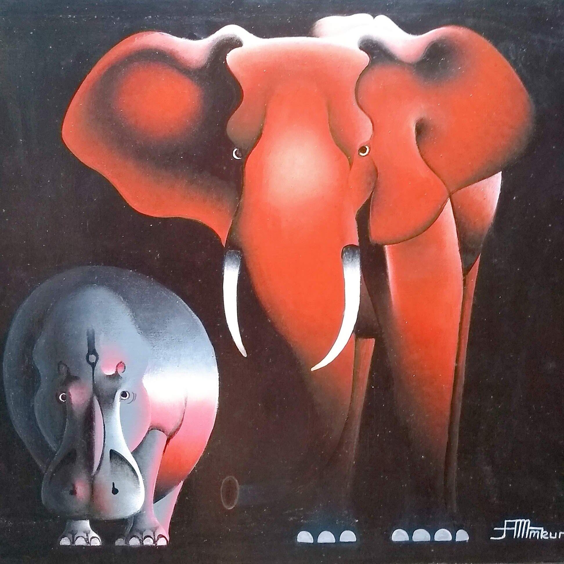 ■アーティスト : ムクラ(Abdul Amonde Mkura 欧州などでも評価されるアーティスト。重量感のあるオリジナリティあふれる動物画が得意。)
