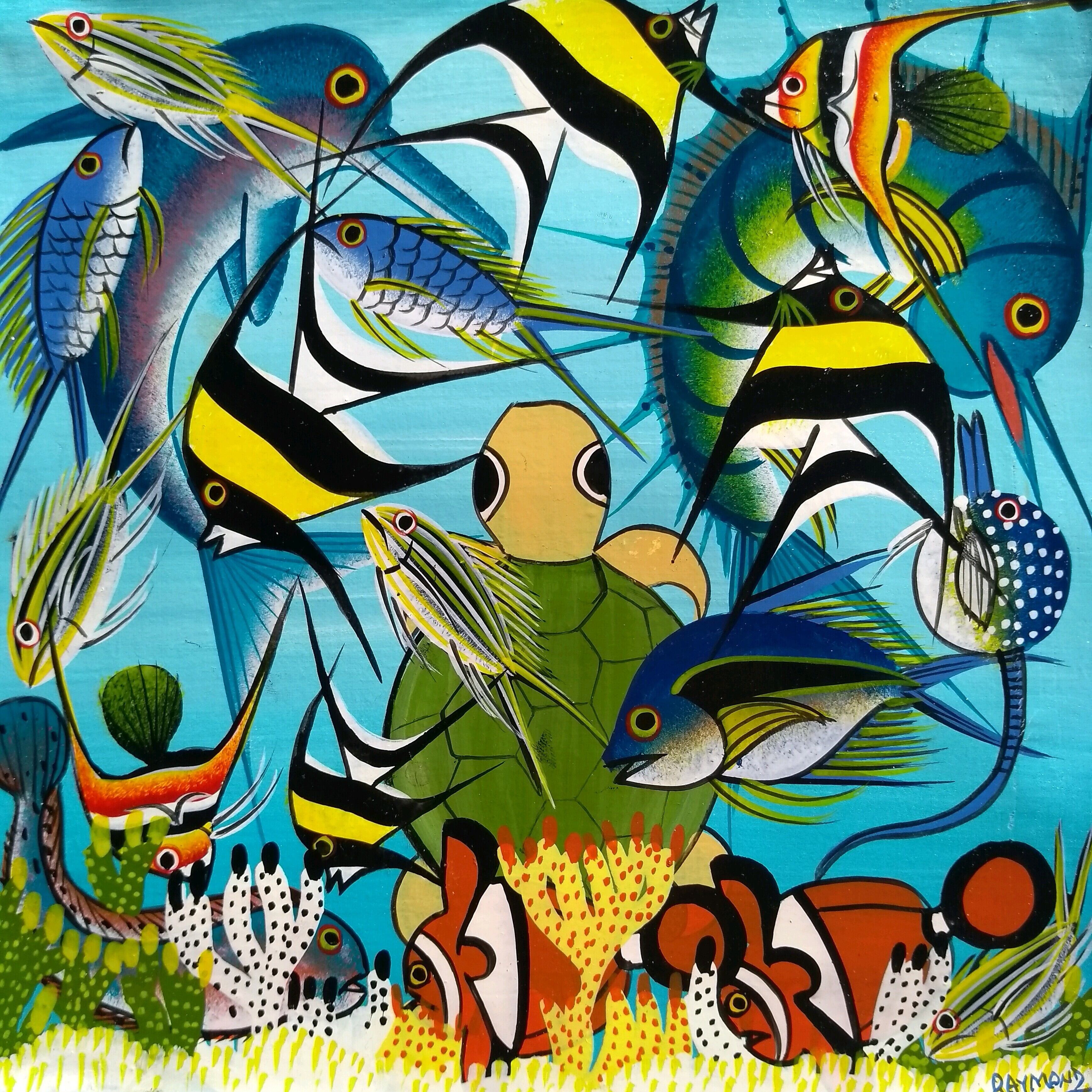 『 Turtle in ocean 』Small-Tingatinga by Raymond 20*20cm