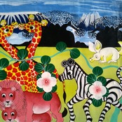 東アフリカ、タンザニアのポップアートです。主にアフリカの動物や植物、人々や風景、精霊などがモチーフとなり、エナメルペンキで描かれています。名前は創始者のエドワード・サイディ・ティンガティンガの名に因んでいます。