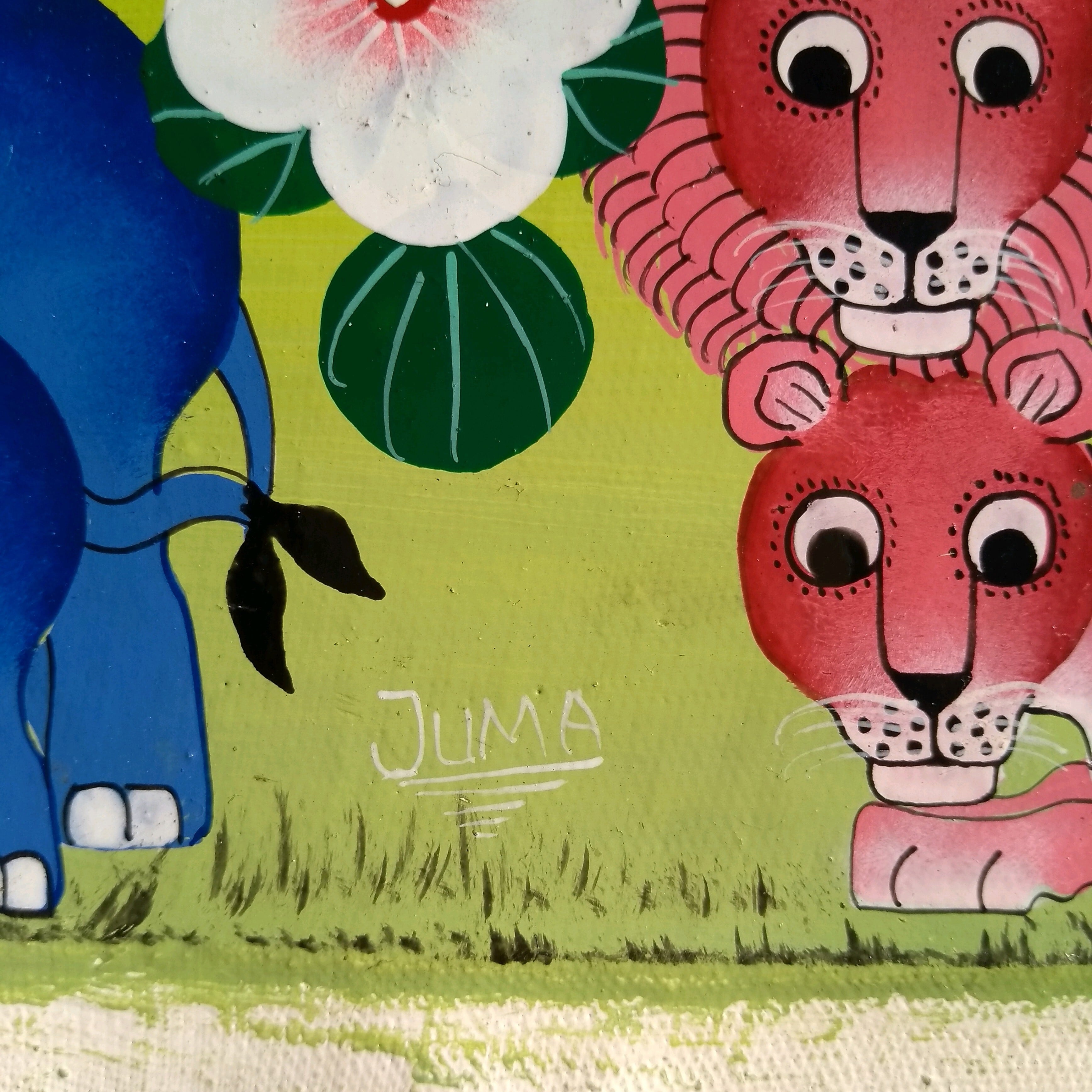 『 Pink lions and animals 』Medium-Tingatinga by Juma 32*20cm