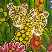 東アフリカ、タンザニアのポップアートです。主にアフリカの動物や植物、人々や風景、精霊などがモチーフとなり、エナメルペンキで描かれています。名前は創始者のエドワード・サイディ・ティンガティンガの名に因んでいます。