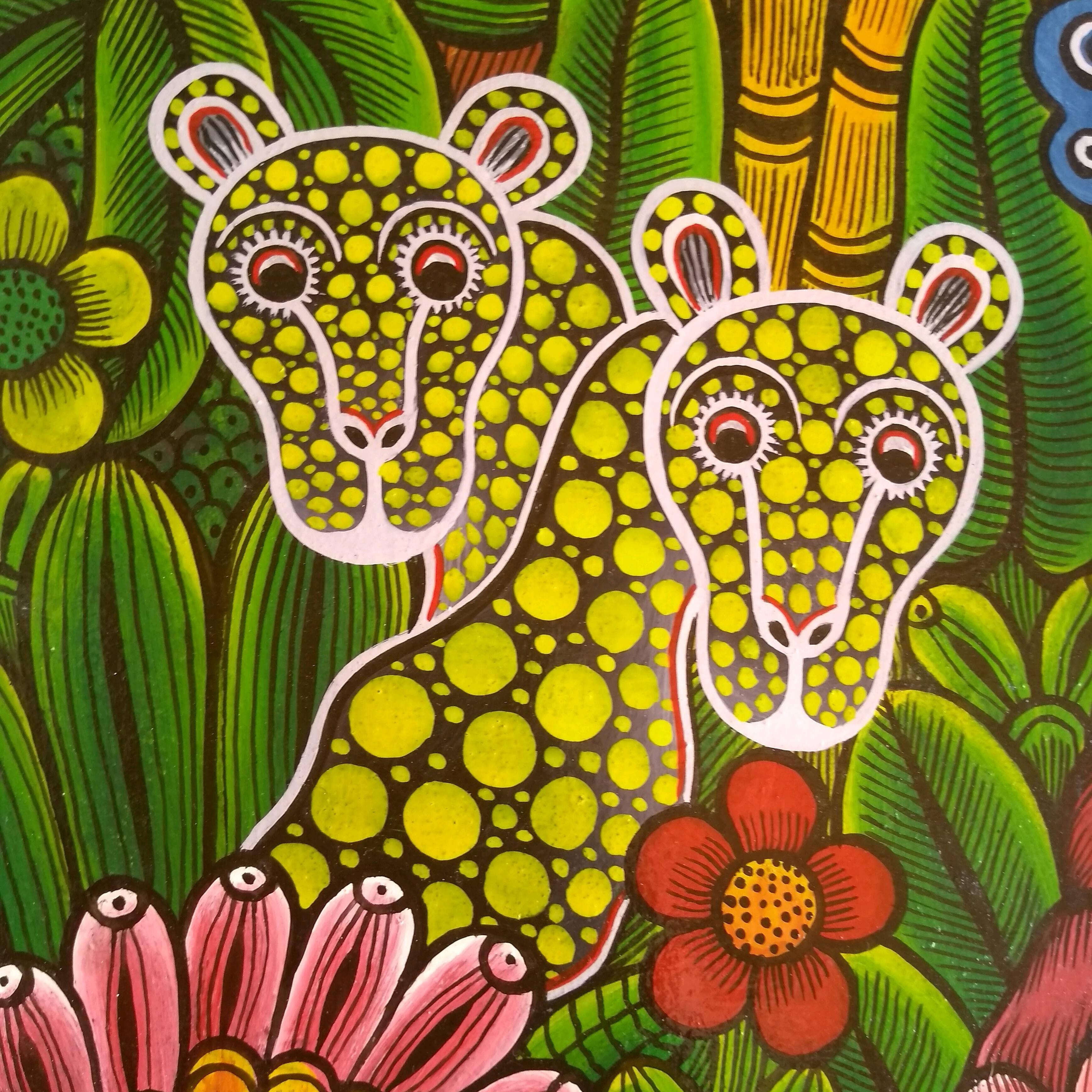 ※ なるべく状態の良いものを仕入れていますが、色ムラ、ペンキの跳ね、ひび割れやしわなどがある場合がございます。赤道直下の太陽の下で創作活動に励む作家たちに思いを馳せて、味わいとして鑑賞していただけると幸いです。