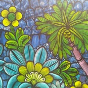 「ムズグノファミリーは植物が不思議な雰囲気でステキです。細やかに描かれたブルートーンのジャングルにキリンとゾウが潜んでいます。」