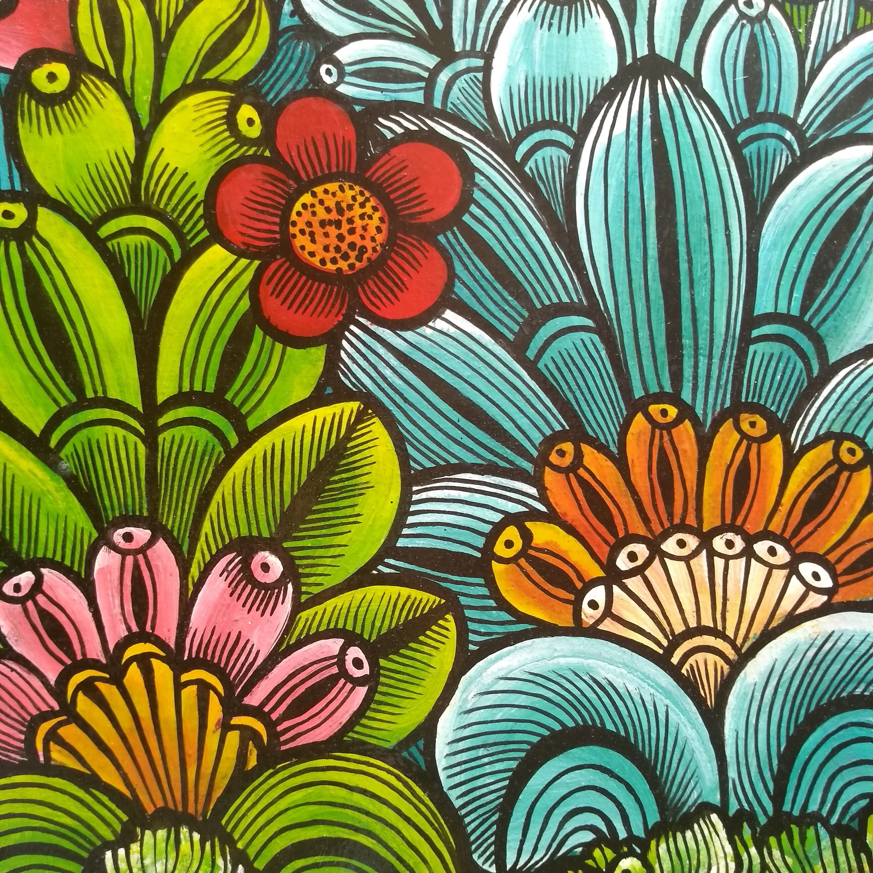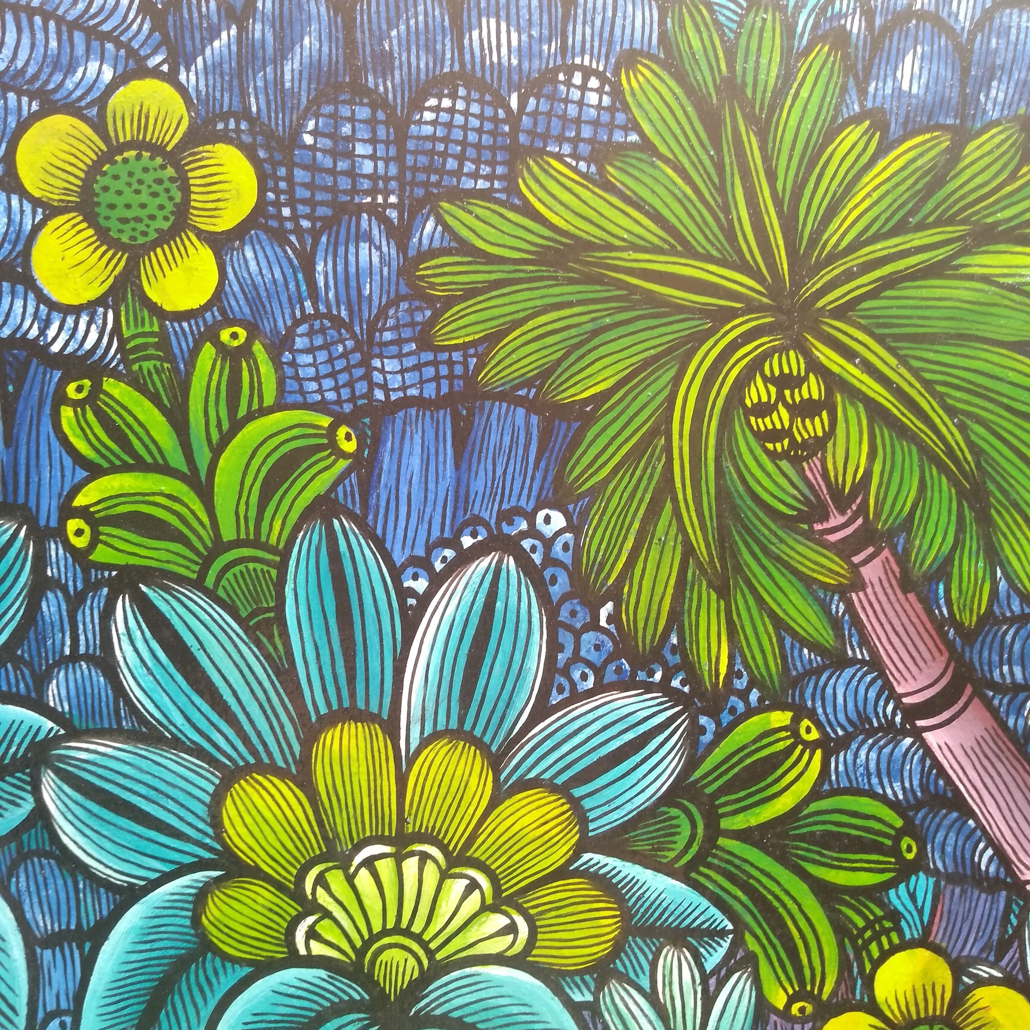 ※ なるべく状態の良いものを仕入れていますが、色ムラ、ペンキの跳ね、ひび割れやしわなどがある場合がございます。赤道直下の太陽の下で創作活動に励む作家たちに思いを馳せて、味わいとして鑑賞していただけると幸いです。