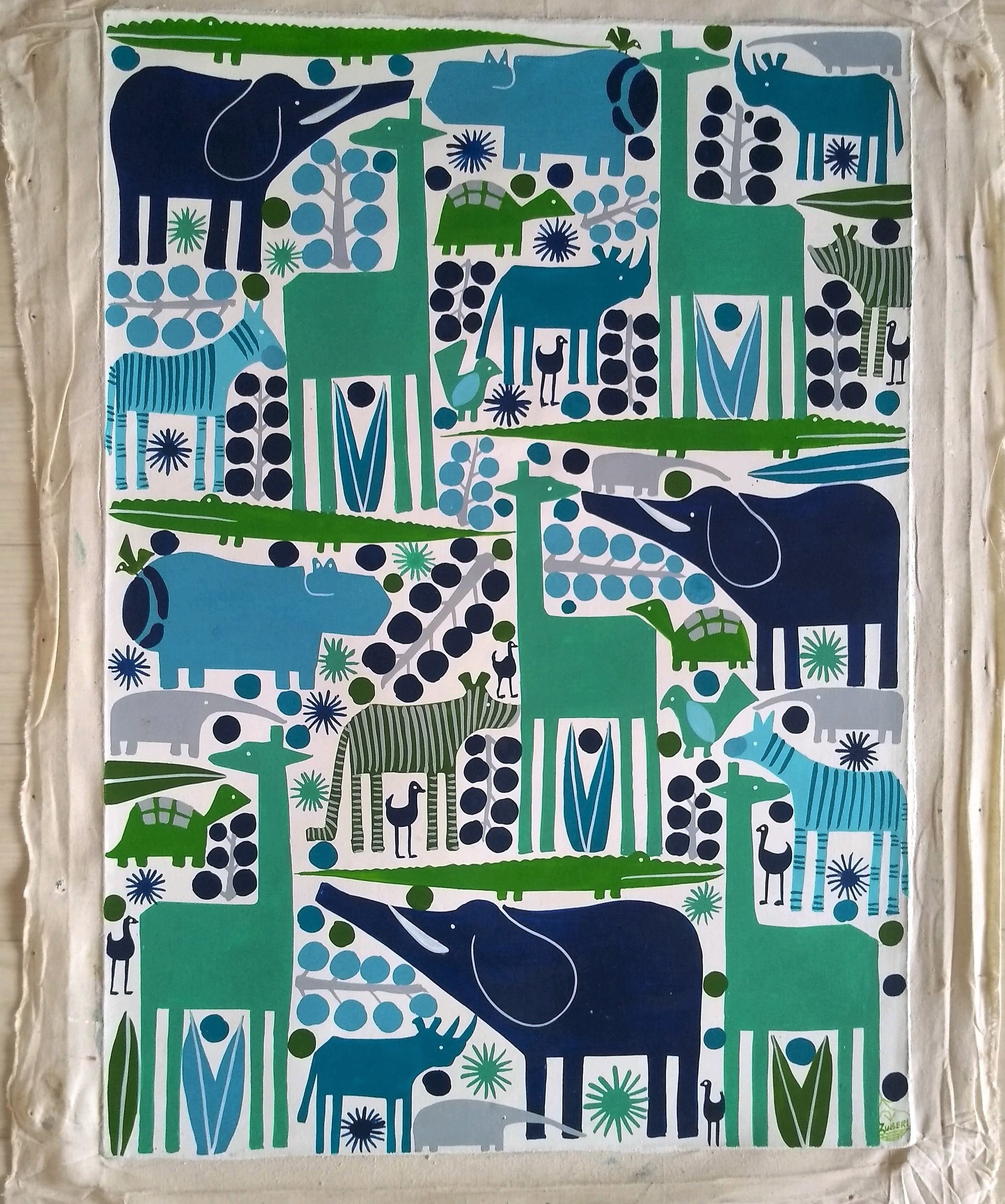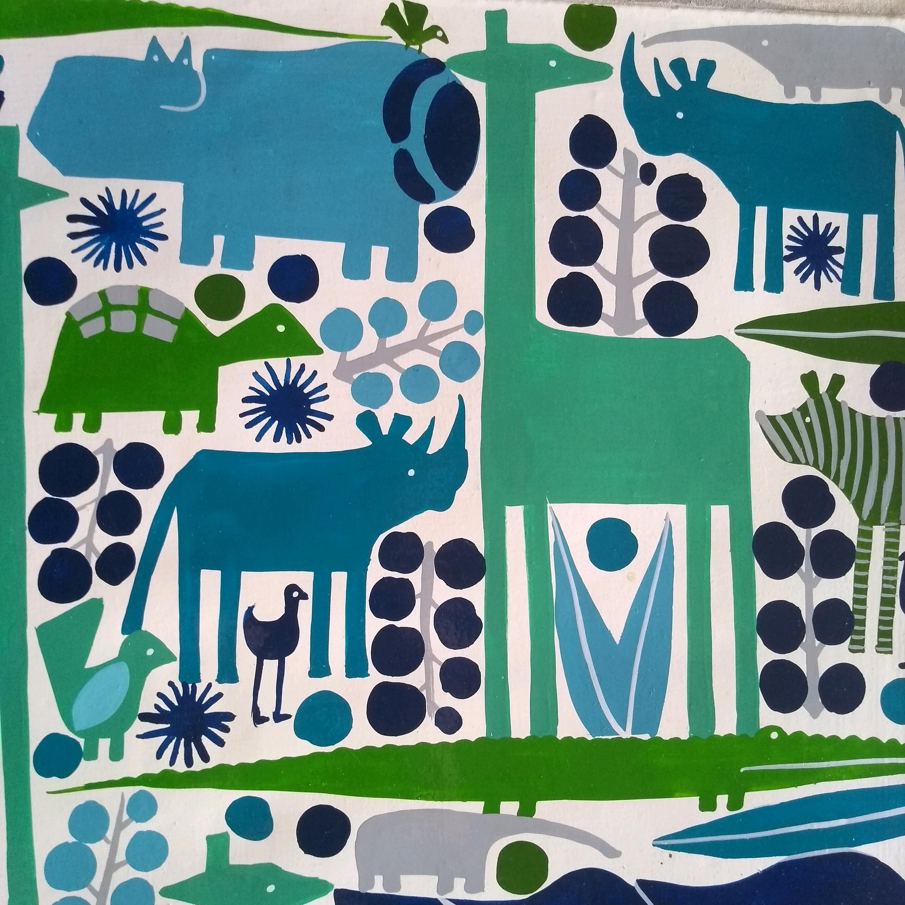 ※ なるべく状態の良いものを仕入れていますが、色ムラ、ペンキの跳ね、ひび割れやしわなどがある場合がございます。赤道直下の太陽の下で創作活動に励む作家たちに思いを馳せて、味わいとして鑑賞していただけると幸いです。