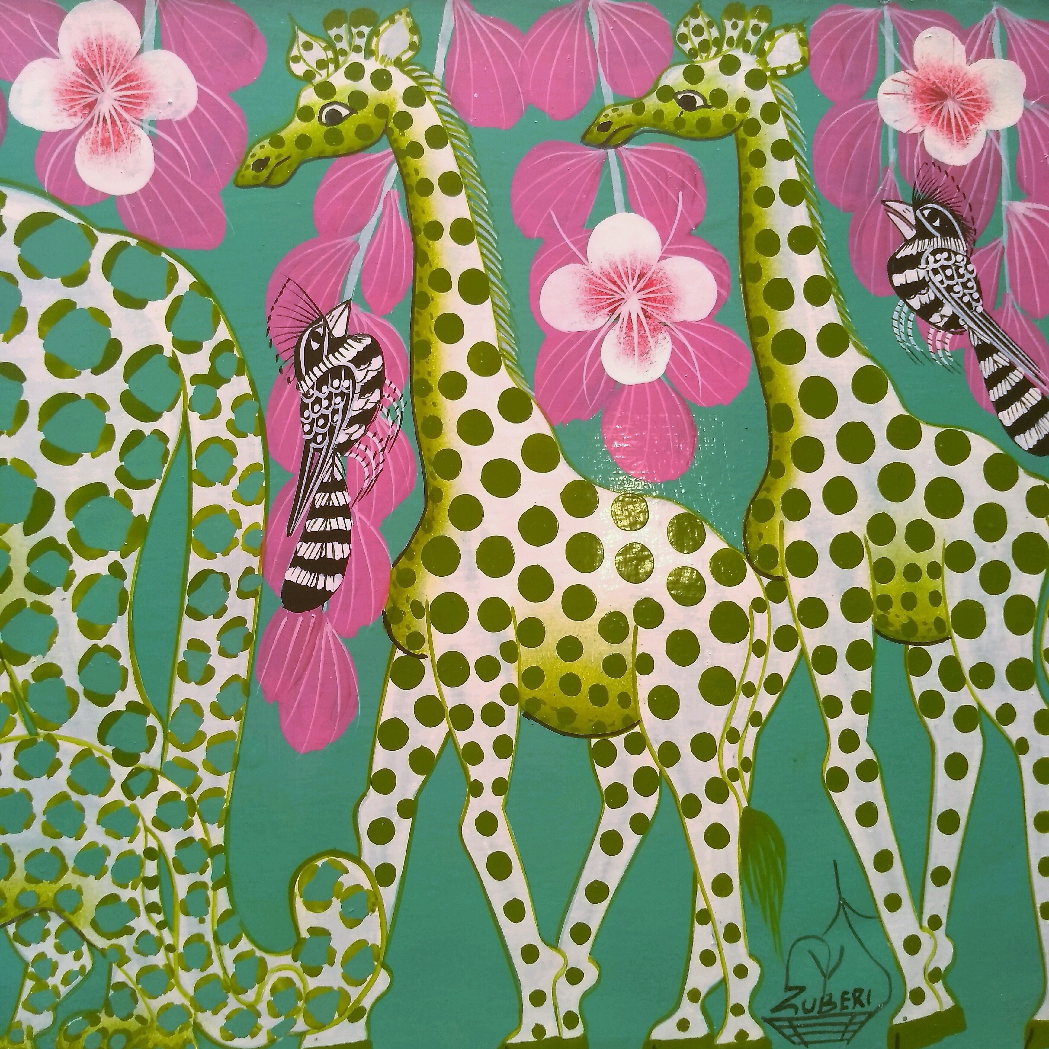 ■アーティスト : ズベリ(ティンガティンガビレッジを代表する人気画家のひとりです。オリジナリティあふれる構図が得意。独特の色感覚が魅力的です。)