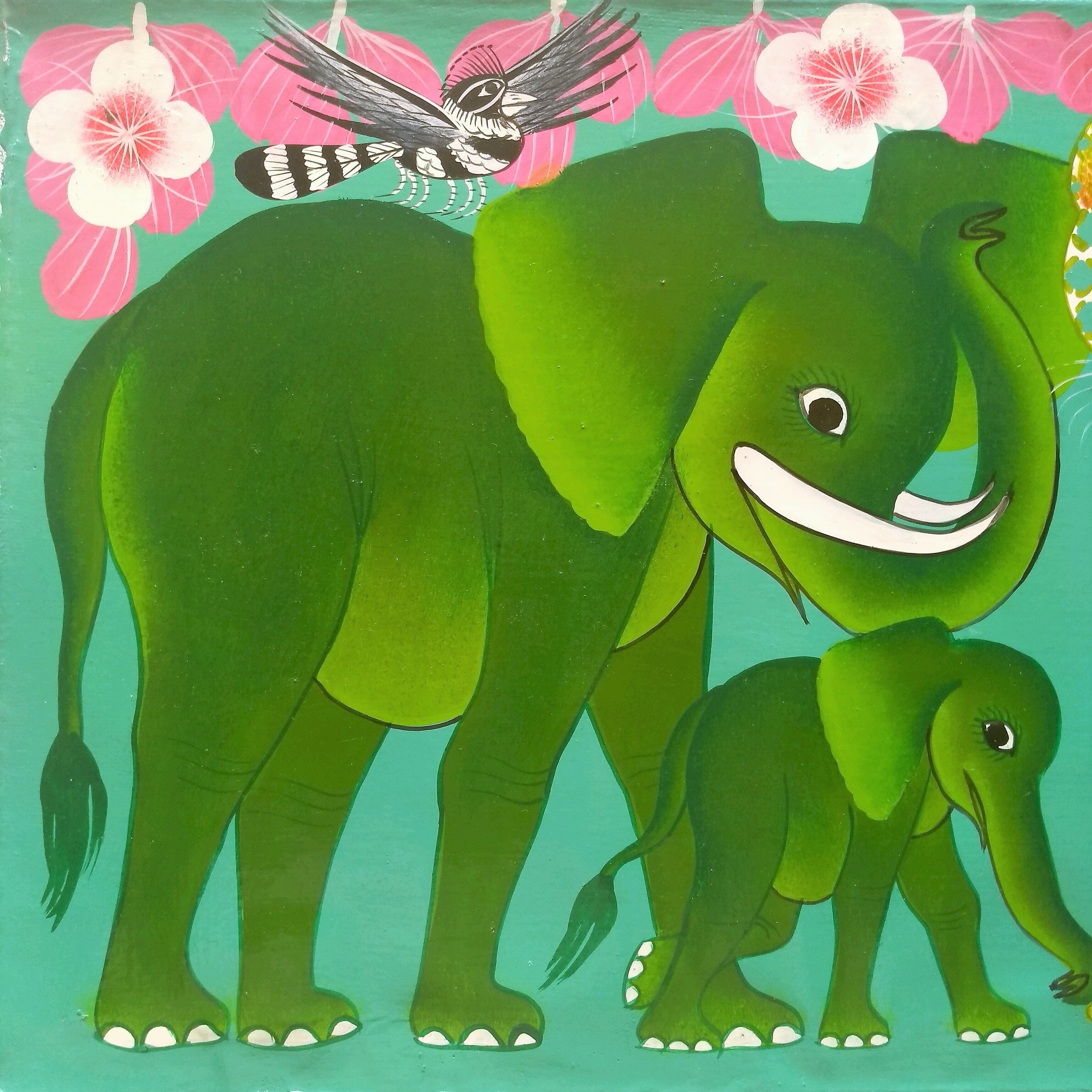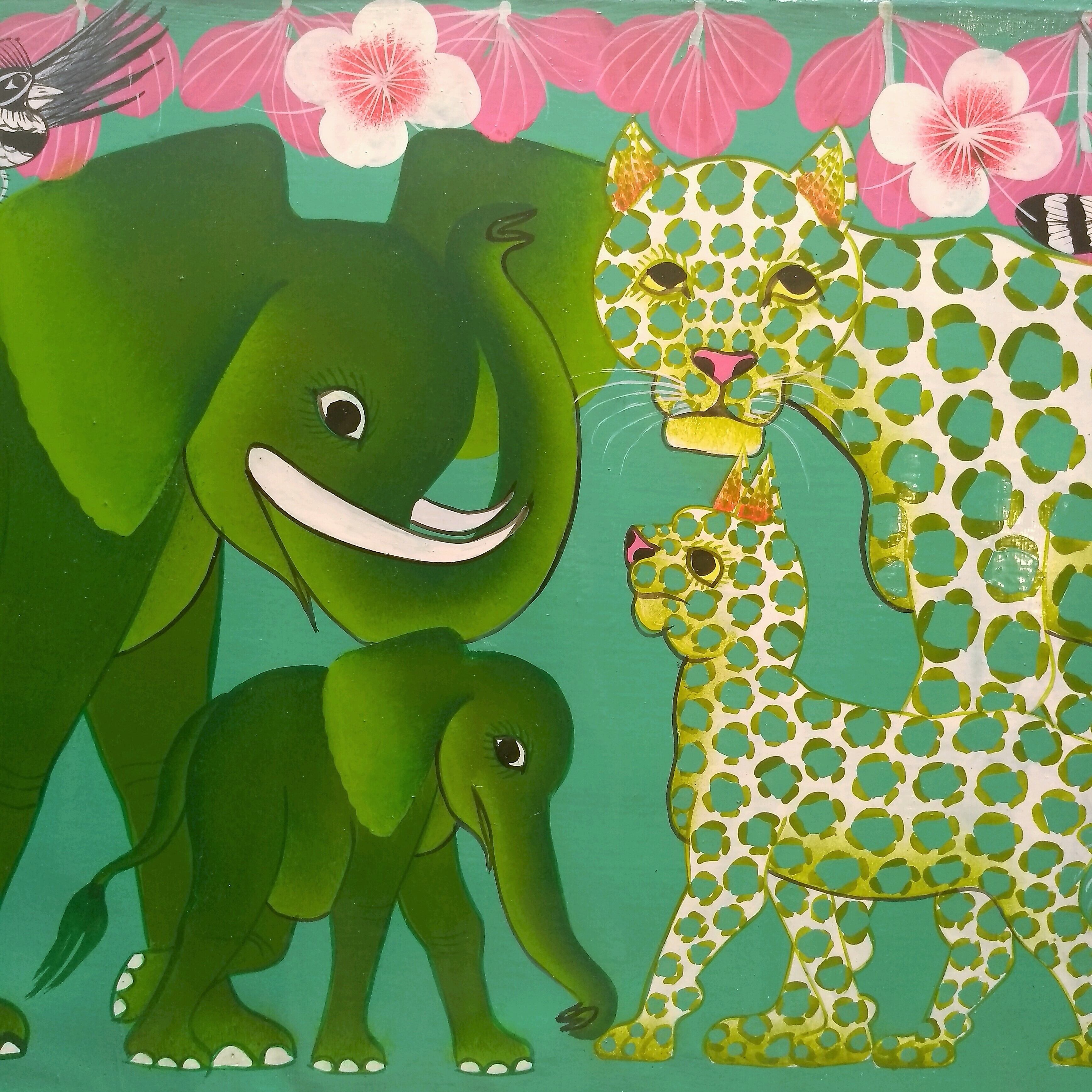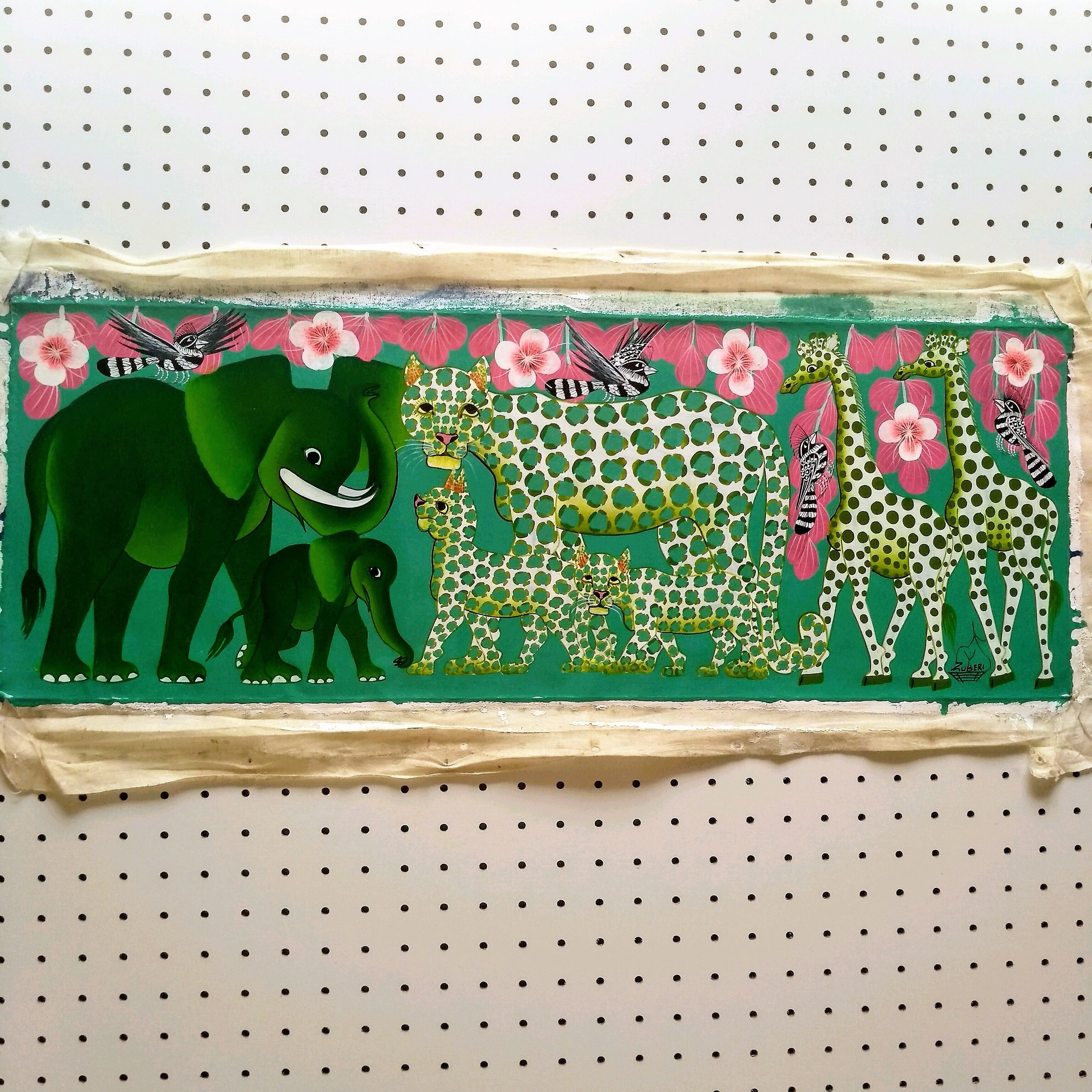 『 Green animals 』Wide-Tingatinga by Zuberi 25*70
