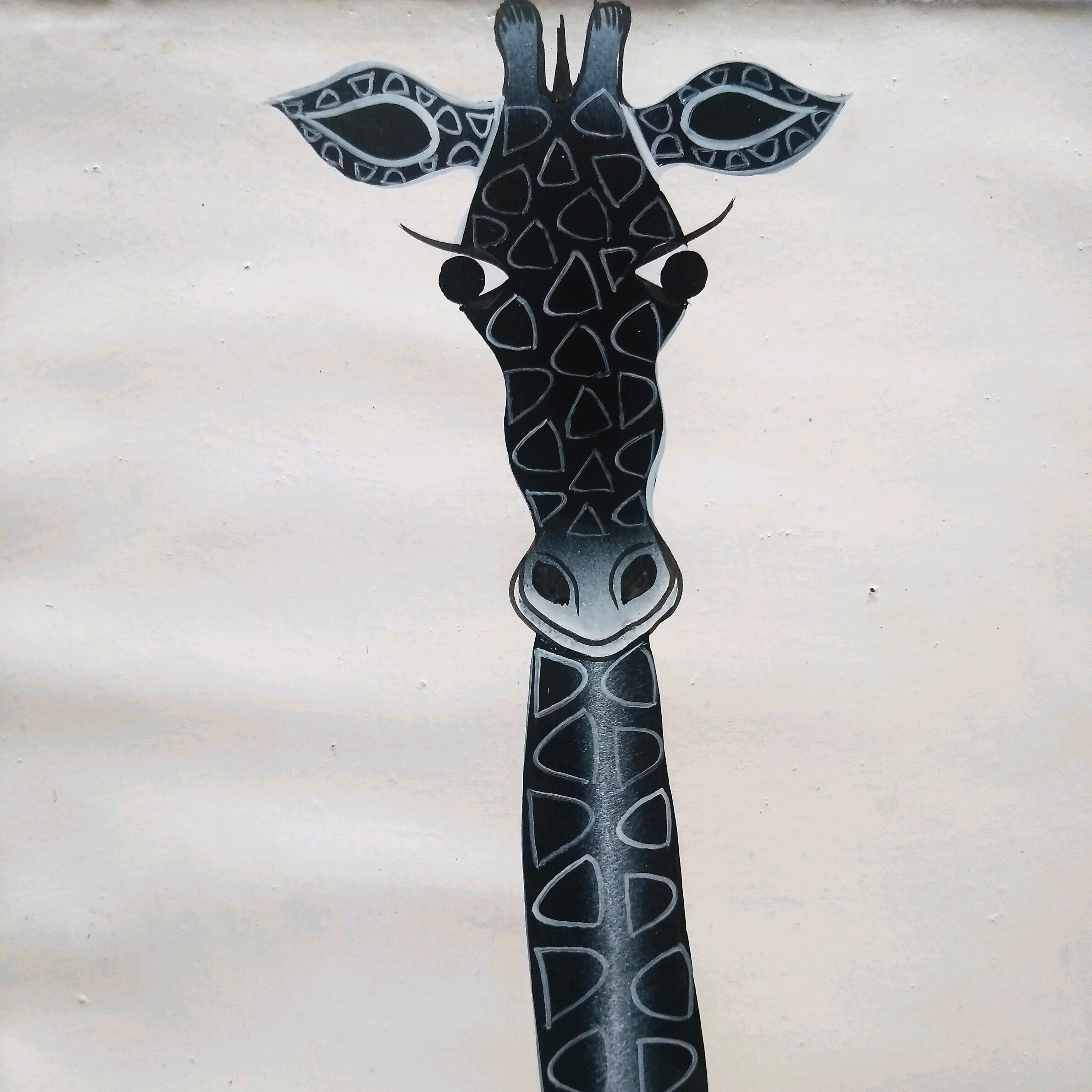 『 Twiga B/W 2 』Long-Tingatinga by Zuberi 70*25