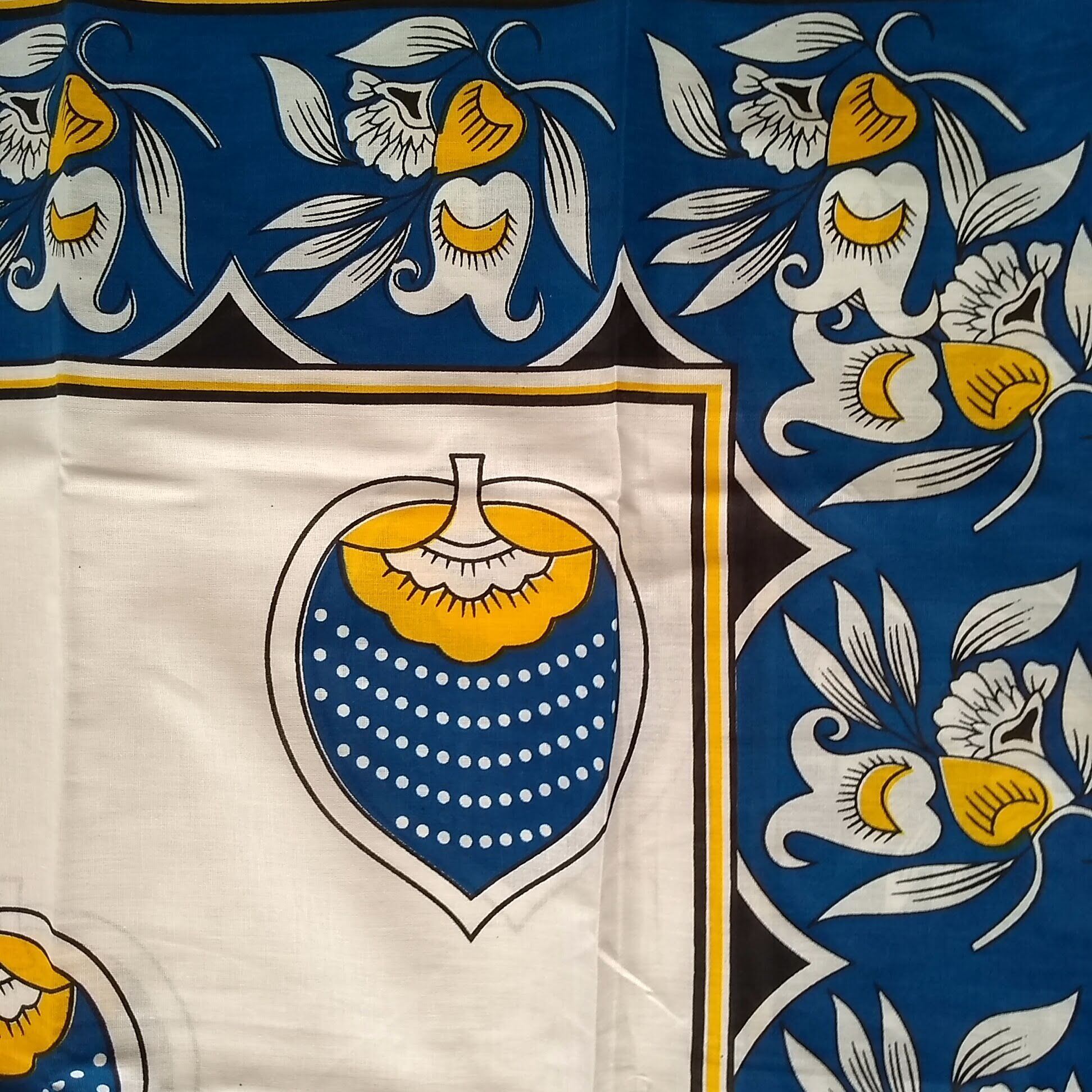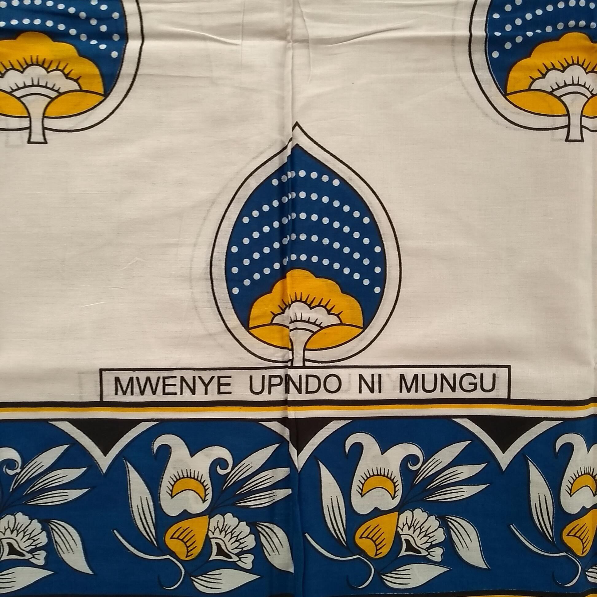 東アフリカ、タンザニア、ウガンダ、ケニアなどで多目的に使用されるカンガという布です。主に女性がエプロンやスカートのように腰に巻いたりして使っています(100を超える使用法があるのだとか!日本の風呂敷みたいですよね)。名前の由来は諸説ありますが、元になった布の柄がカンガ(ホロホロ鳥)みたいだったとか。ことわざなどのメッセージが書かれているものが多いですが、ないものもあります。