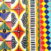 「実際あるタンザニアの伝統布キテンゲやマサイブランケットを思わせるカラフルな柄を見るだけで楽しい!ポップな作品です。ザチさんがマサイを描くのは珍しいです。」