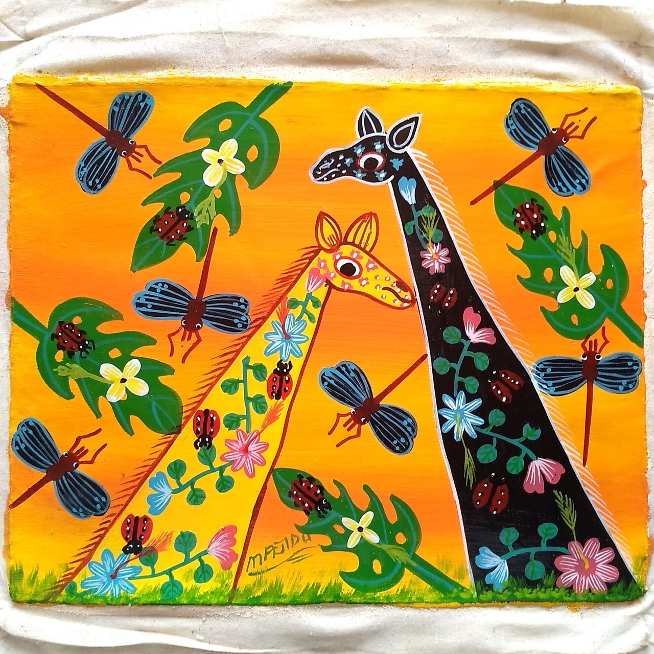 『 Floral Twiga twiga 3 』 Small-Tingatinga by Majidu 22*27cm