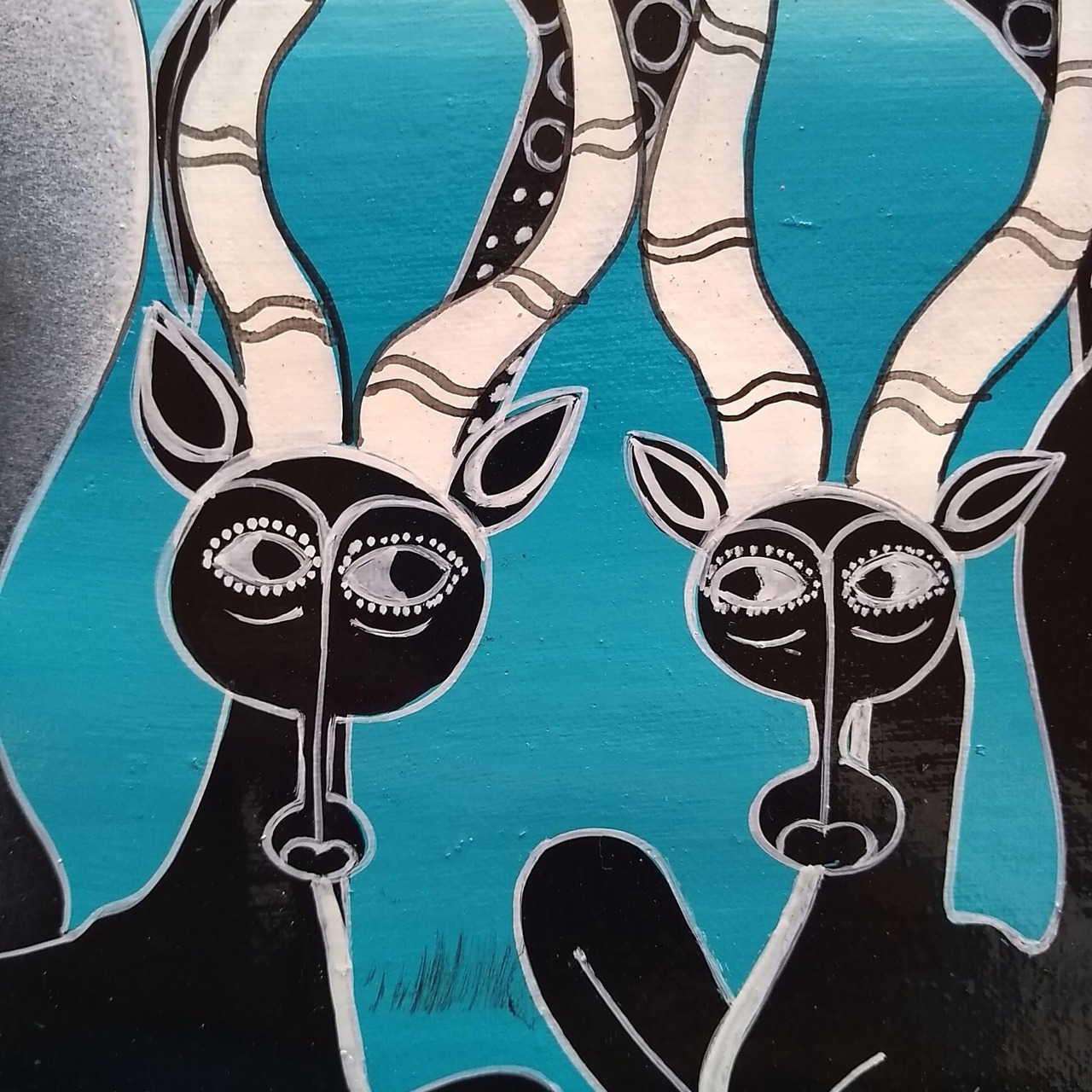 『 Blue gazelle,tembo and twiga 』Medium-Tingatinga by Mustapha 37*27cm