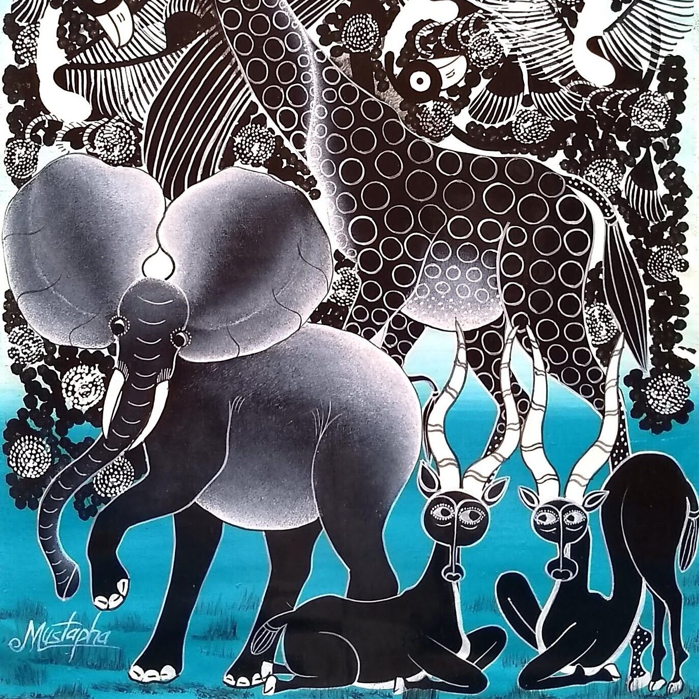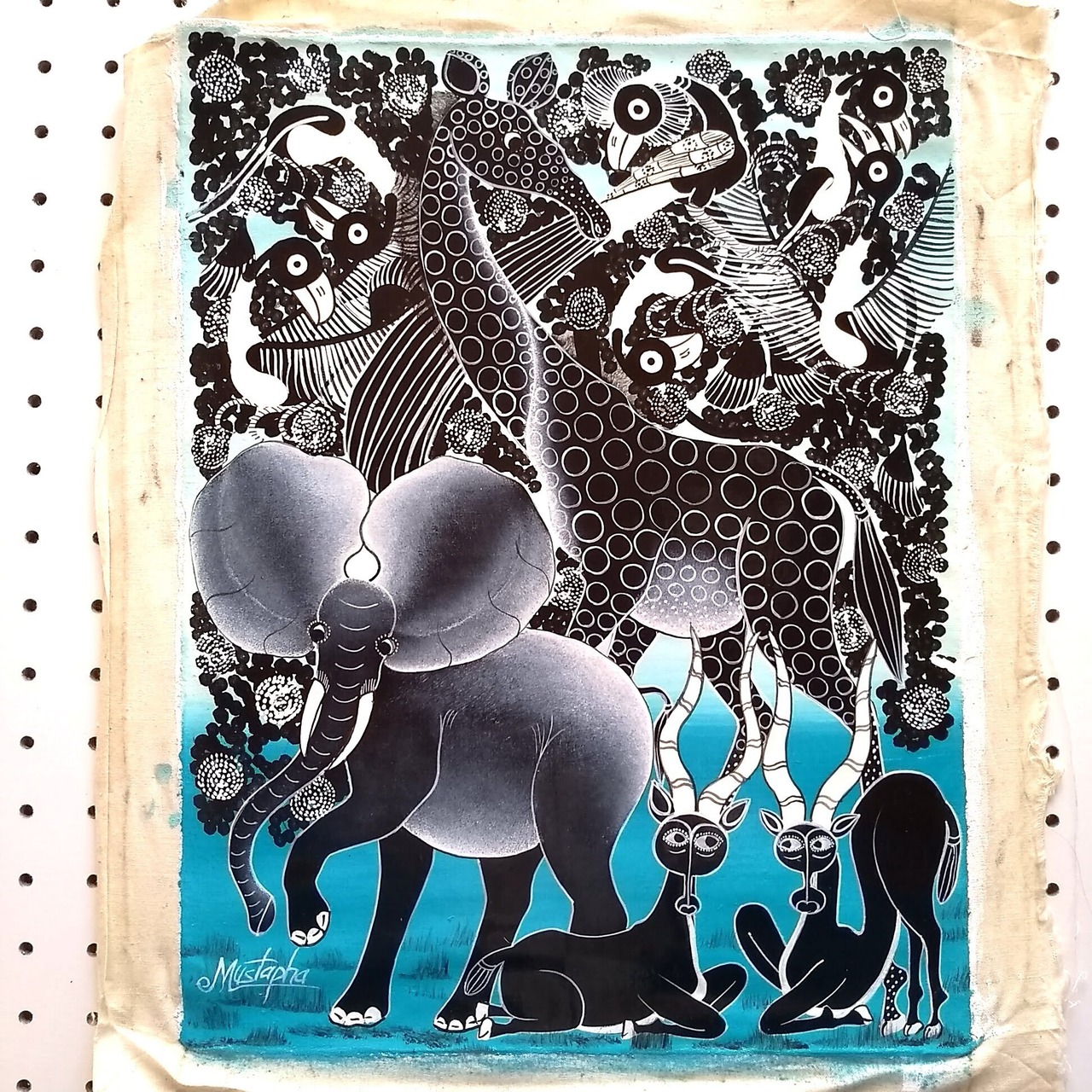 ■アーティスト : ムスターファ(サバンナに集う愛らしい動物たちを描くのが得意なアーティスト。ゾウの耳が丸く立っているのが特徴です。)