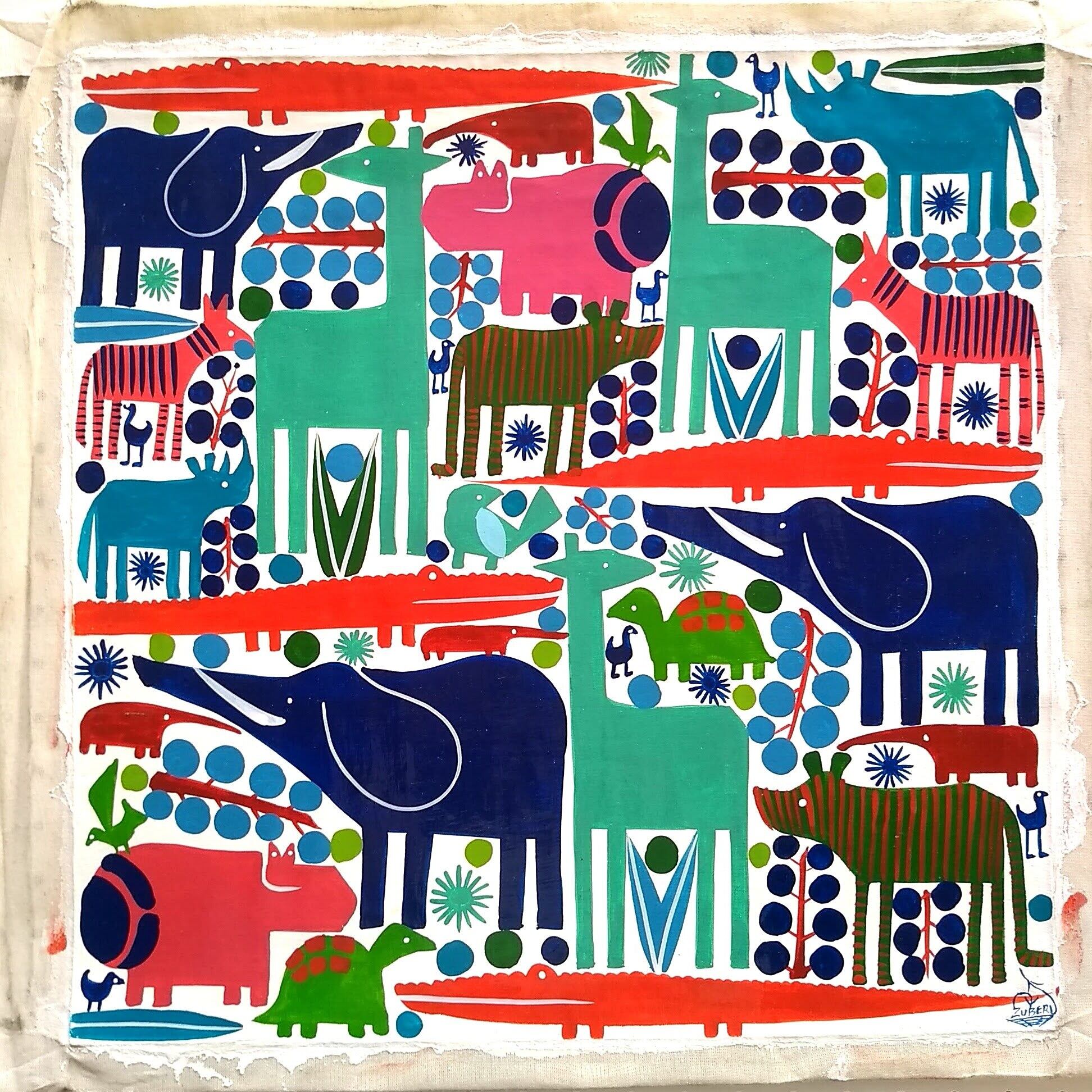 ■アーティスト : ズベリ(ティンガティンガビレッジを代表する人気画家のひとりです。オリジナリティあふれる構図が得意。独特の色感覚が魅力的です。)