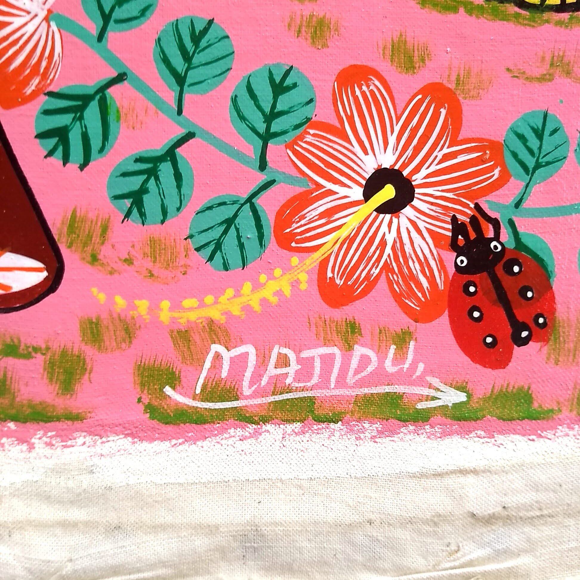 ※ なるべく状態の良いものを仕入れていますが、色ムラ、ペンキの跳ね、ひび割れやしわなどがある場合がございます。赤道直下の太陽の下で創作活動に励む作家たちに思いを馳せて、味わいとして鑑賞していただけると幸いです。