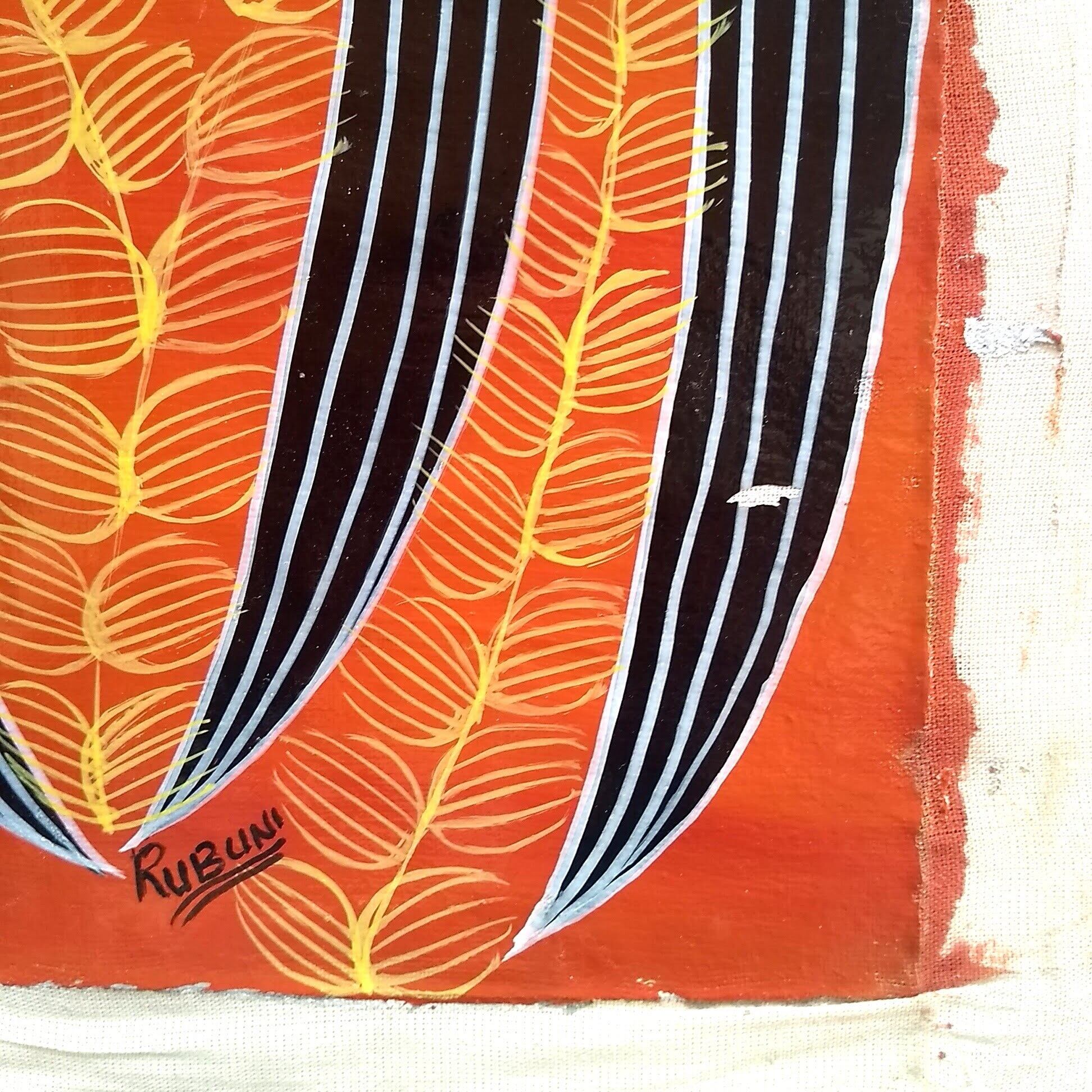 ※ なるべく状態の良いものを仕入れていますが、色ムラ、ペンキの跳ね、ひび割れやしわなどがある場合がございます。赤道直下の太陽の下で創作活動に励む作家たちに思いを馳せて、味わいとして鑑賞していただけると幸いです。