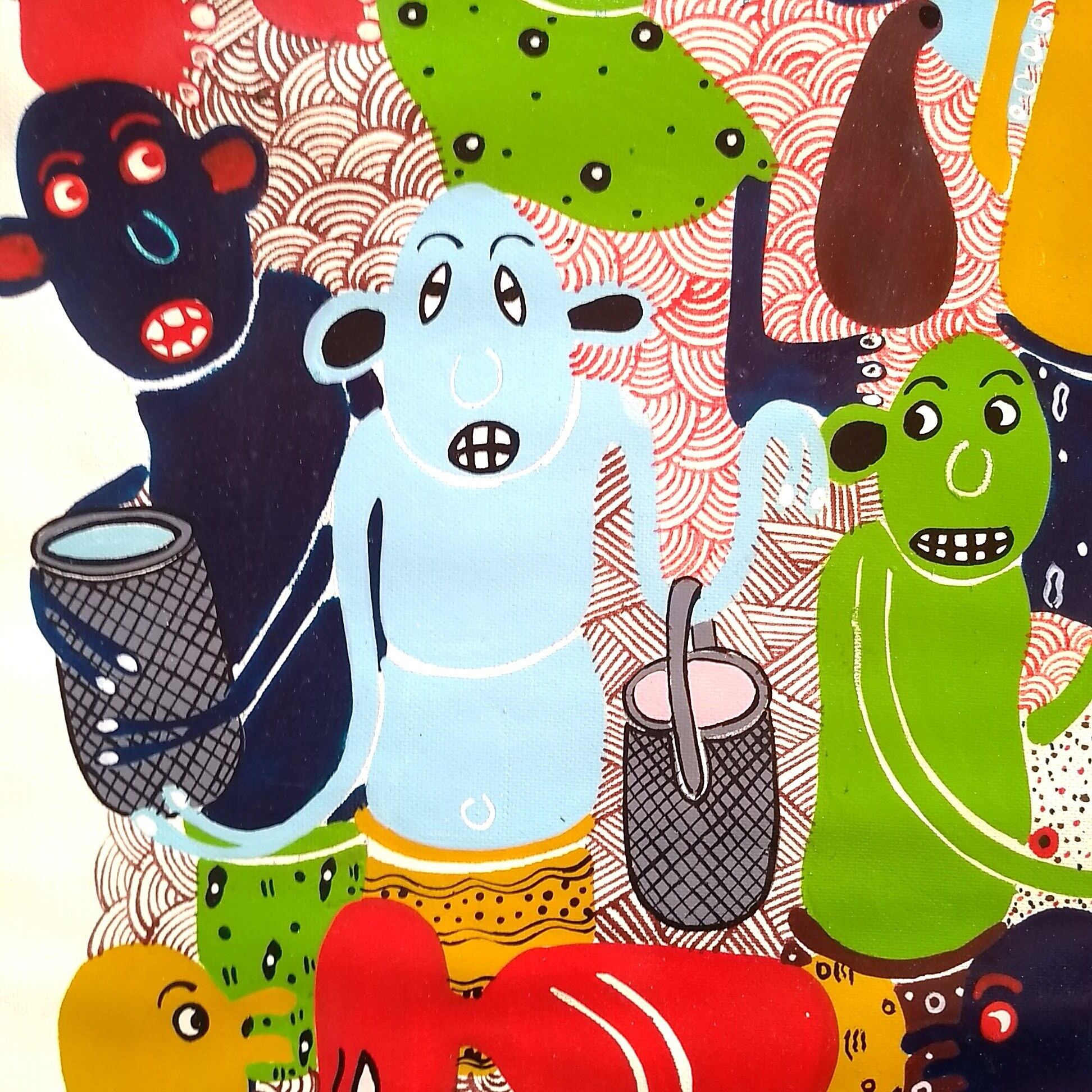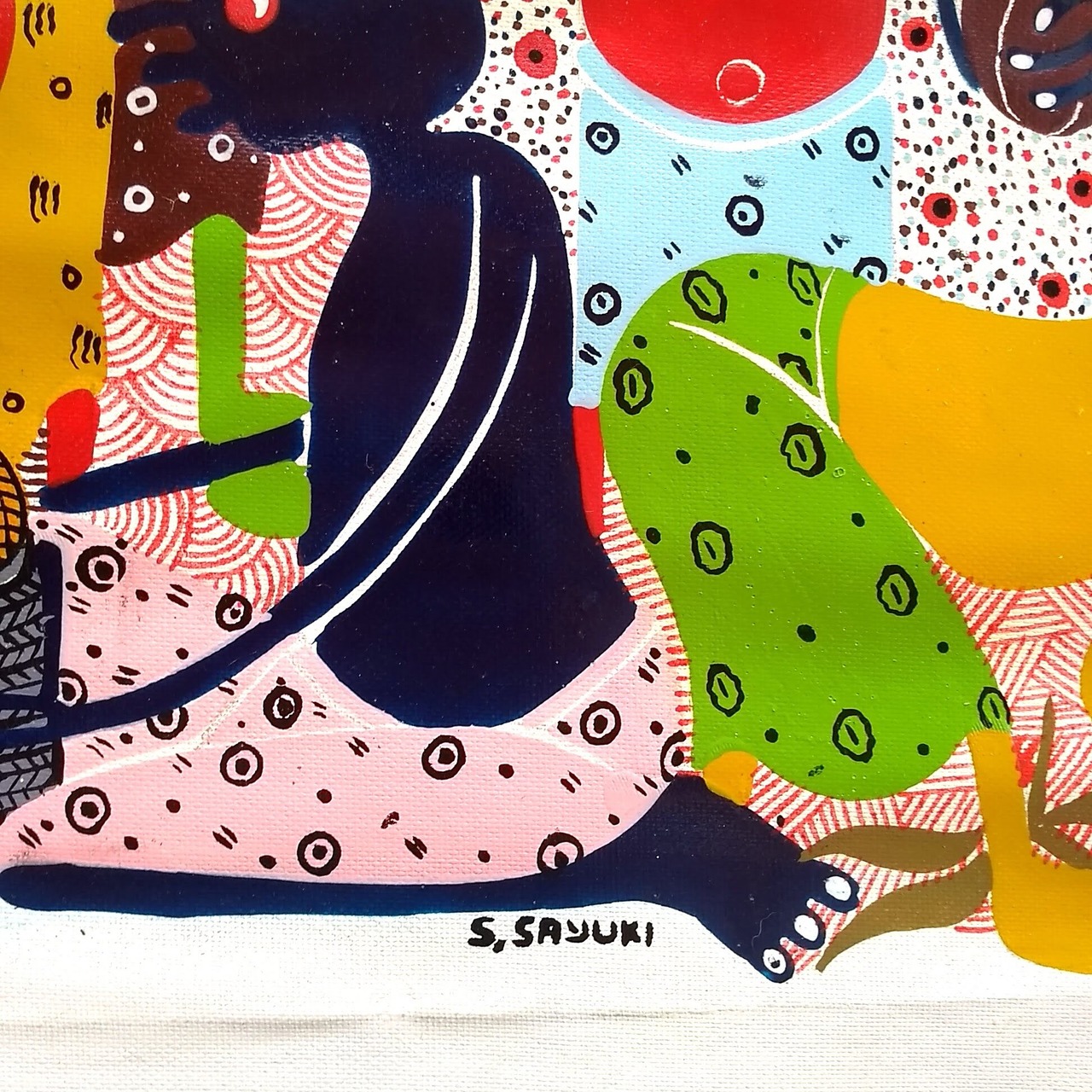 ※ なるべく状態の良いものを仕入れていますが、色ムラ、ペンキの跳ね、ひび割れやしわなどがある場合がございます。赤道直下の太陽の下で創作活動に励む作家たちに思いを馳せて、味わいとして鑑賞していただけると幸いです。