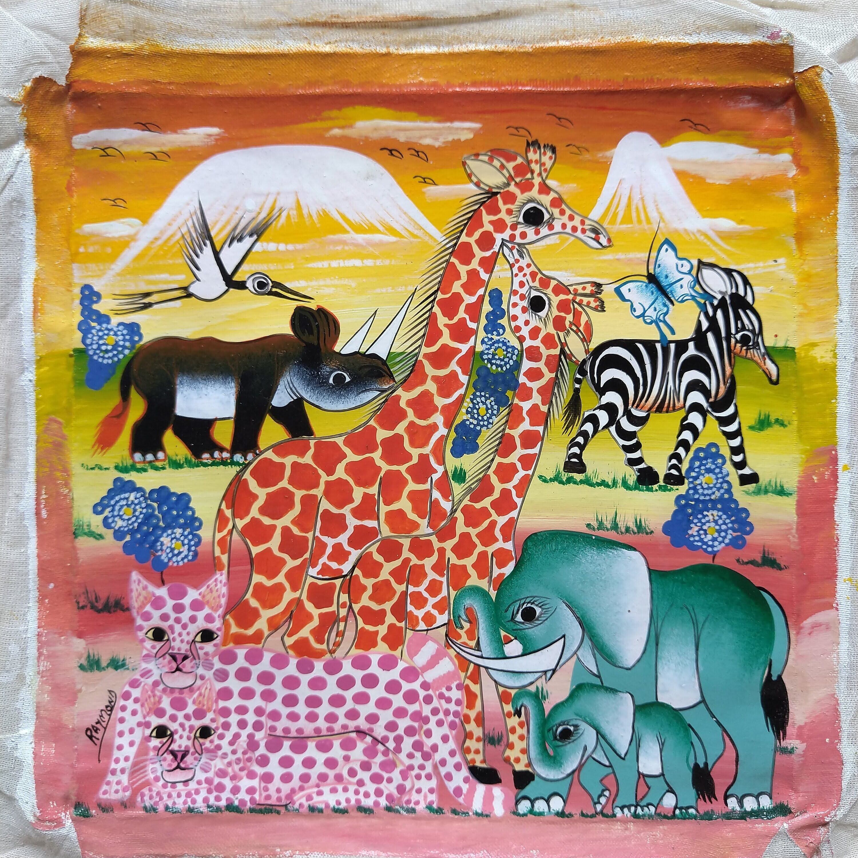 『 Animals / sunset 』Small-Tingatinga by Raymond 20*20cm