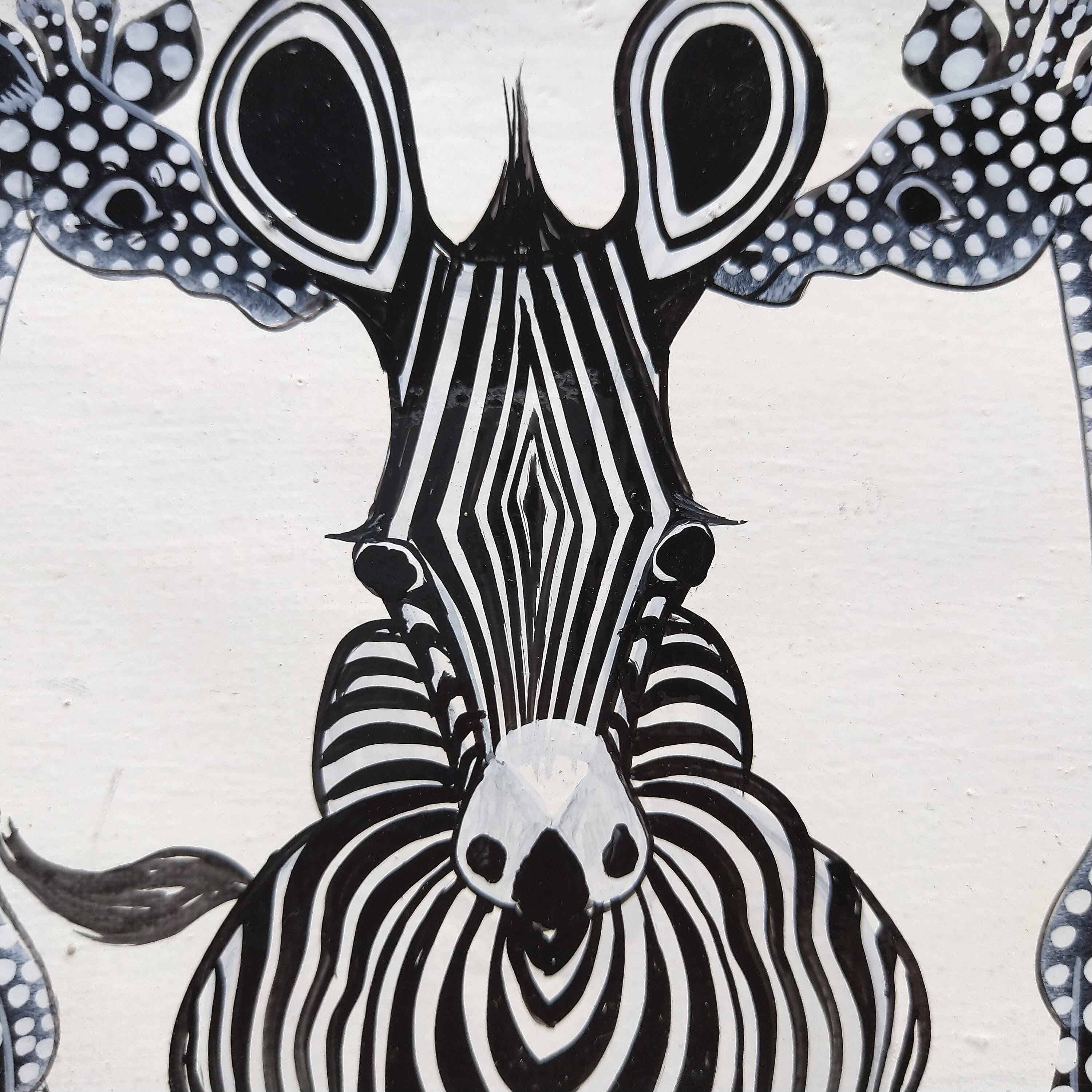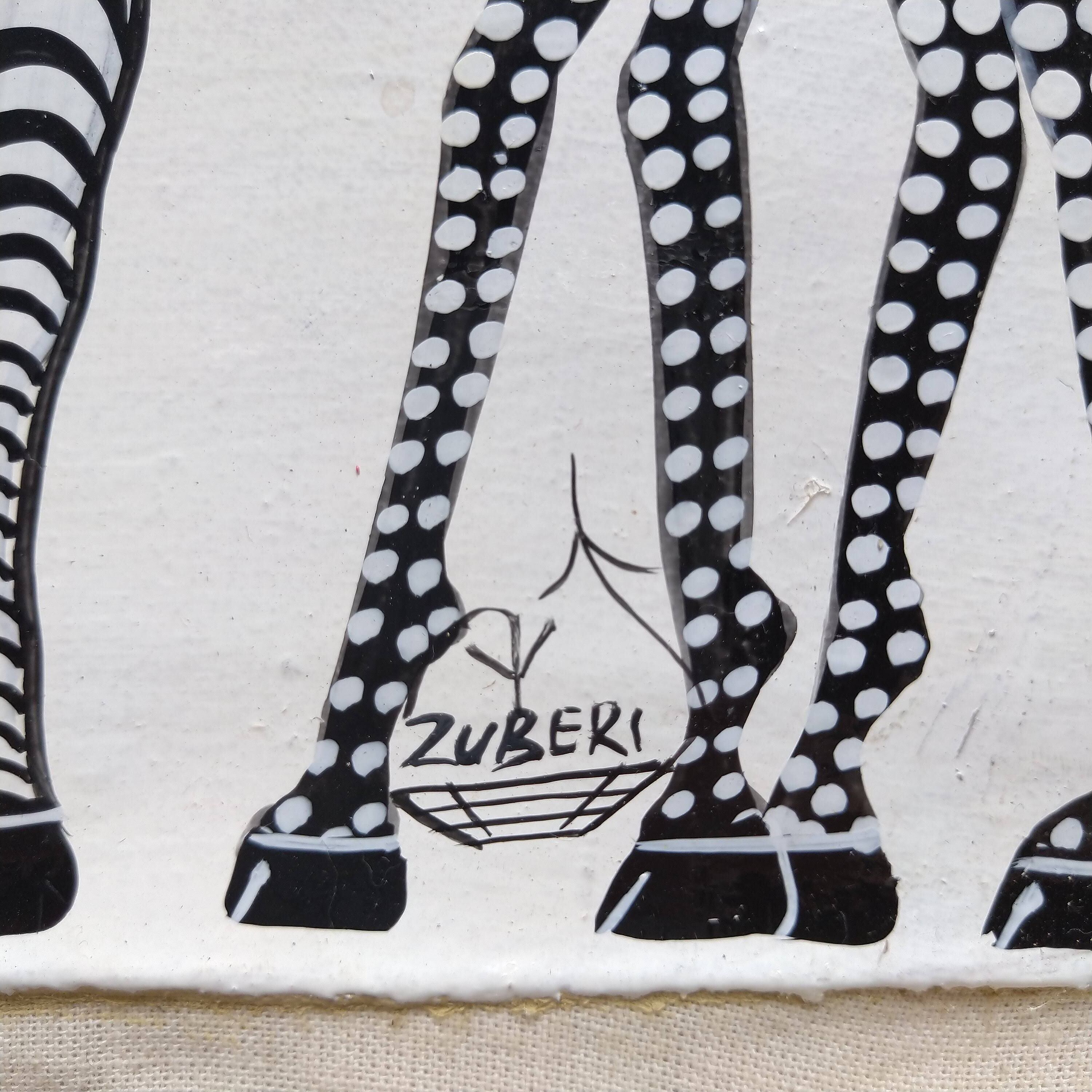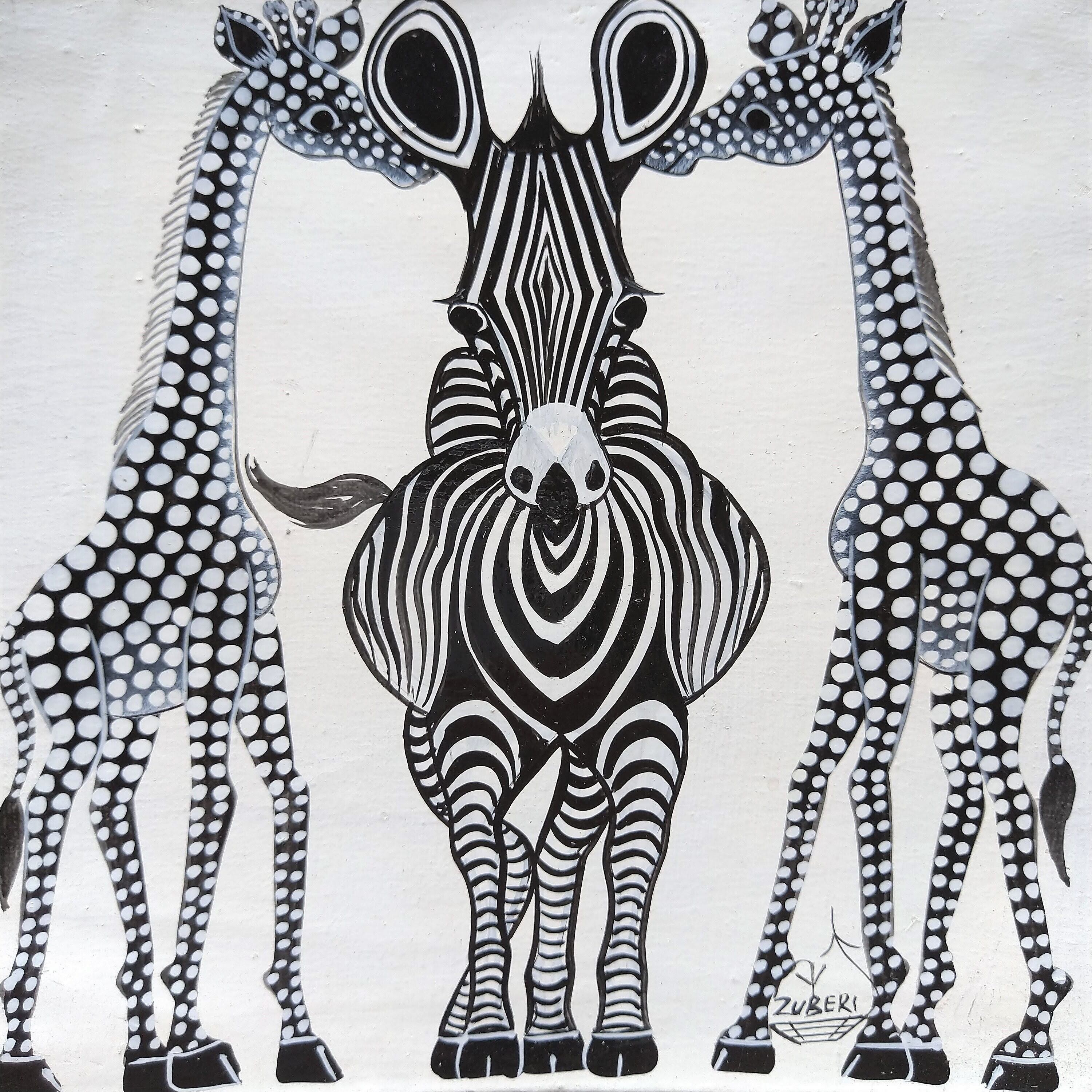 『 Twiga and zebra B/W1 』Small-Tingatinga by Zuberi 20*20cm