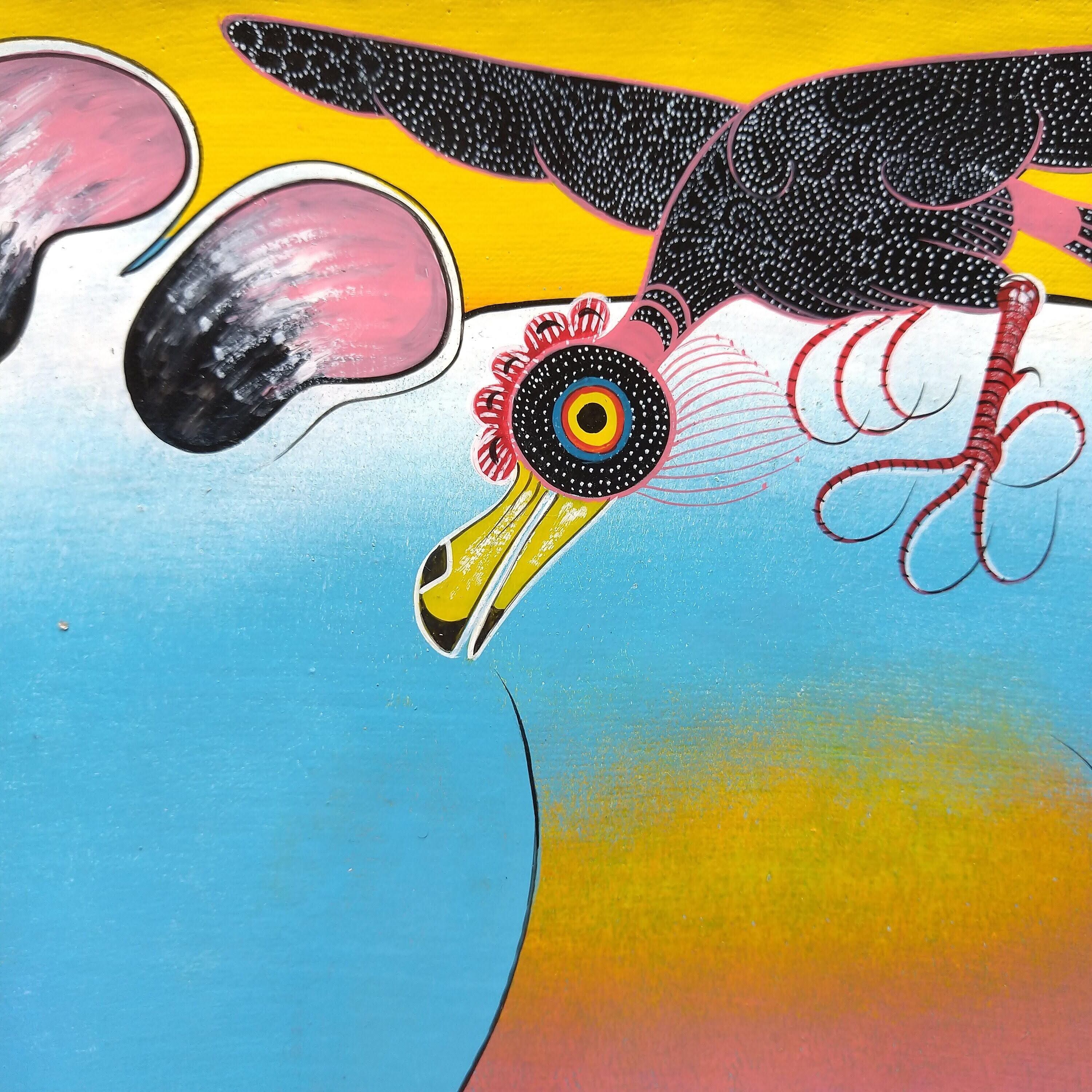※ なるべく状態の良いものを仕入れていますが、色ムラ、ペンキの跳ね、ひび割れやしわなどがある場合がございます。赤道直下の太陽の下で創作活動に励む作家たちに思いを馳せて、味わいとして鑑賞していただけると幸いです。