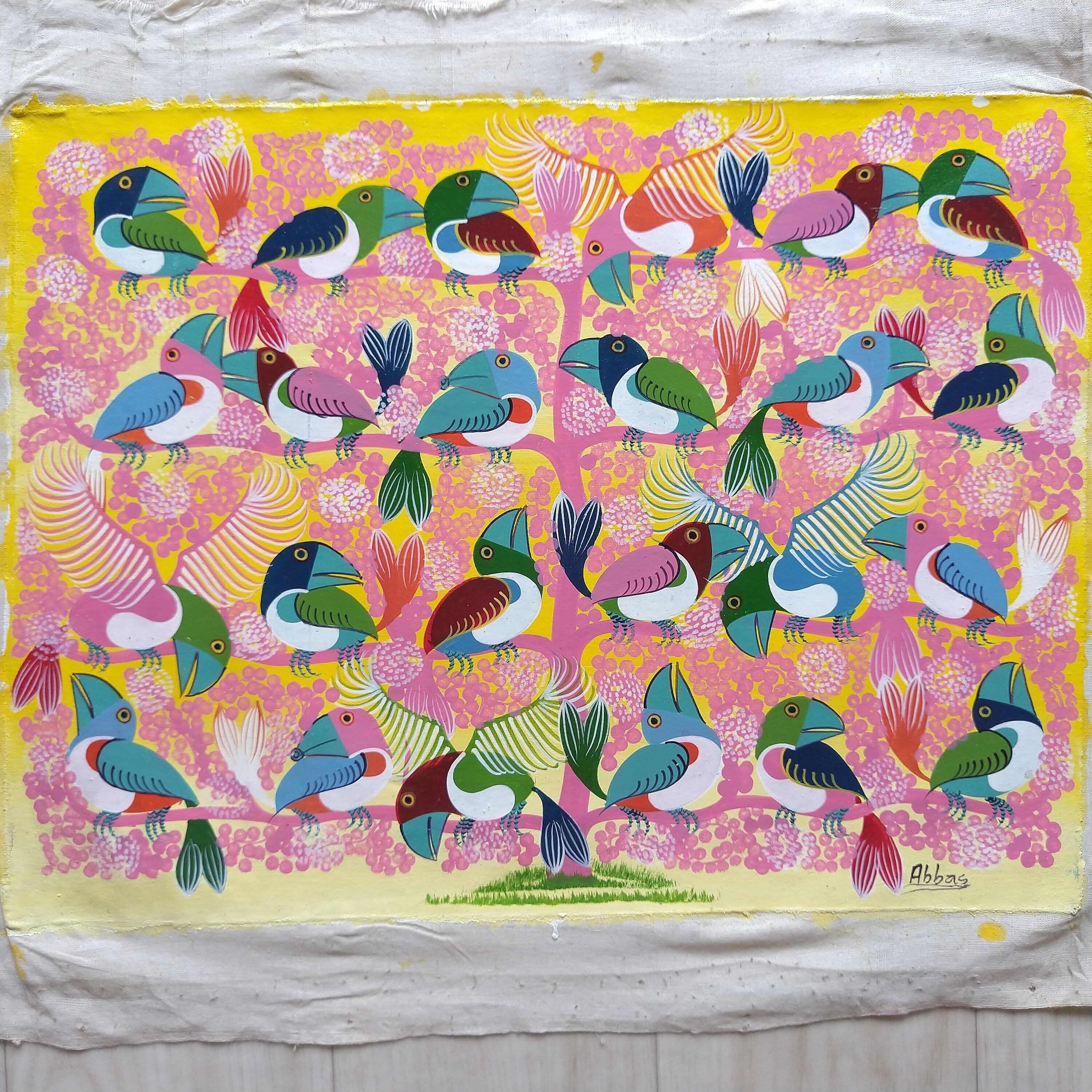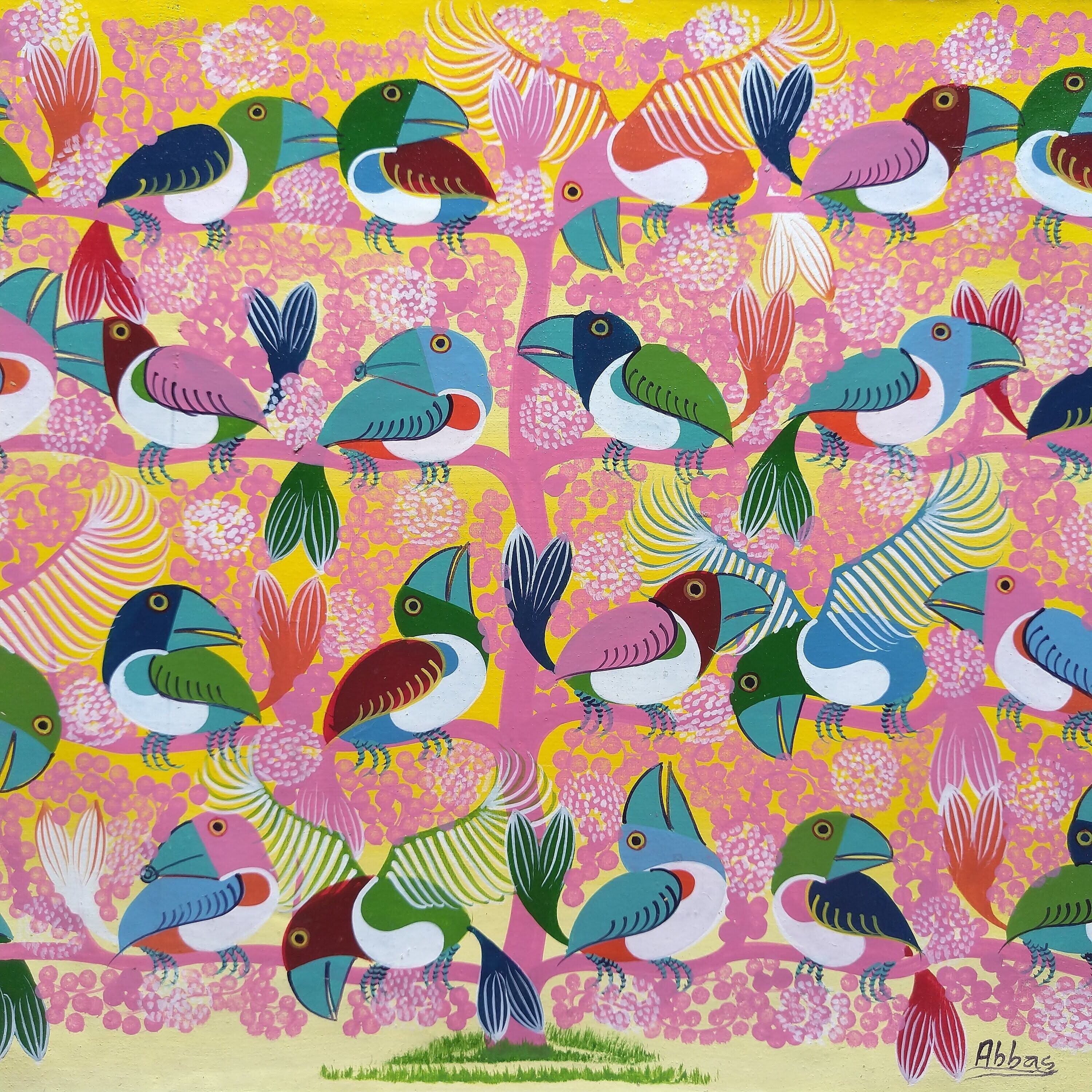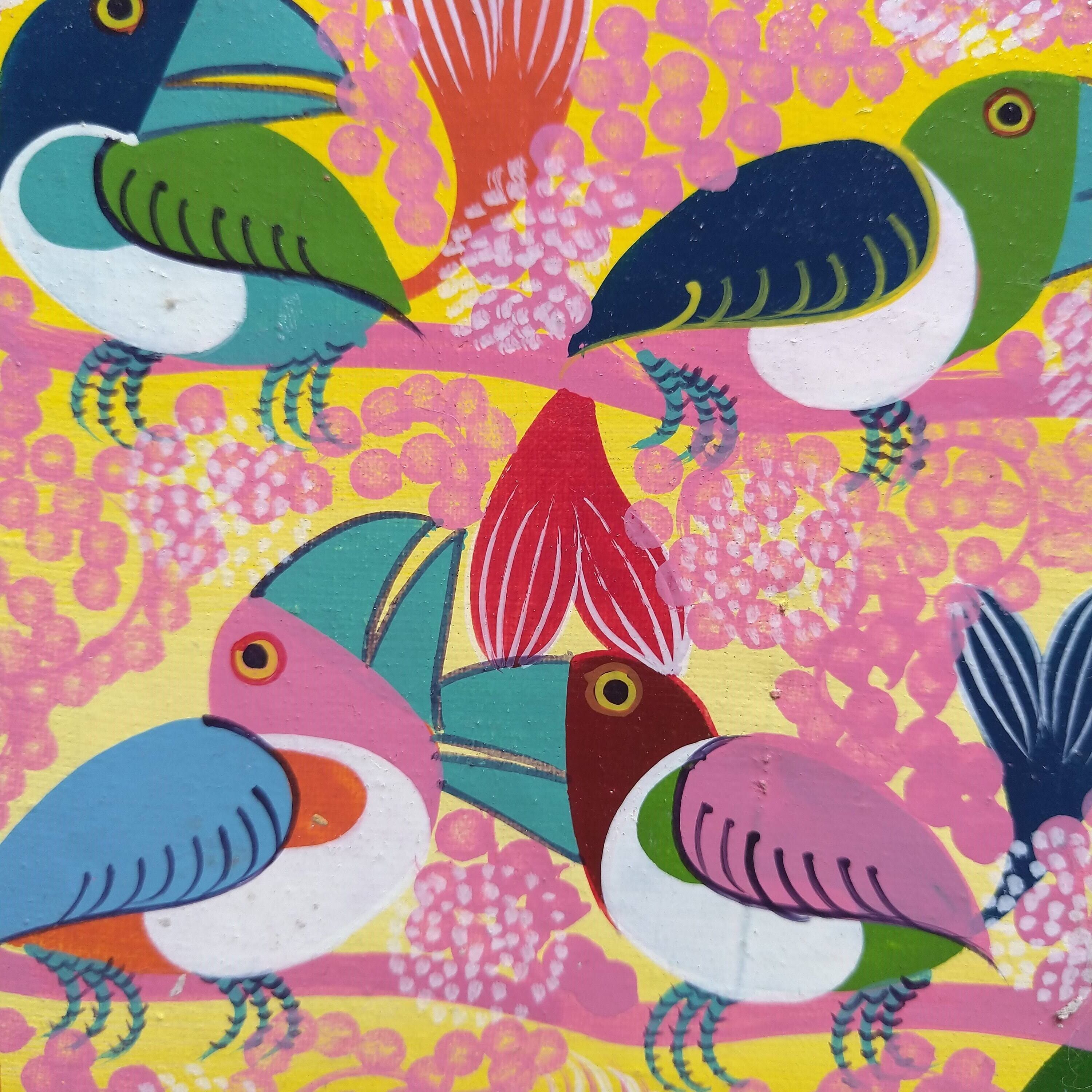 『 Birds in yellow 』Medium-Tingatinga by Abbas 30*40cm