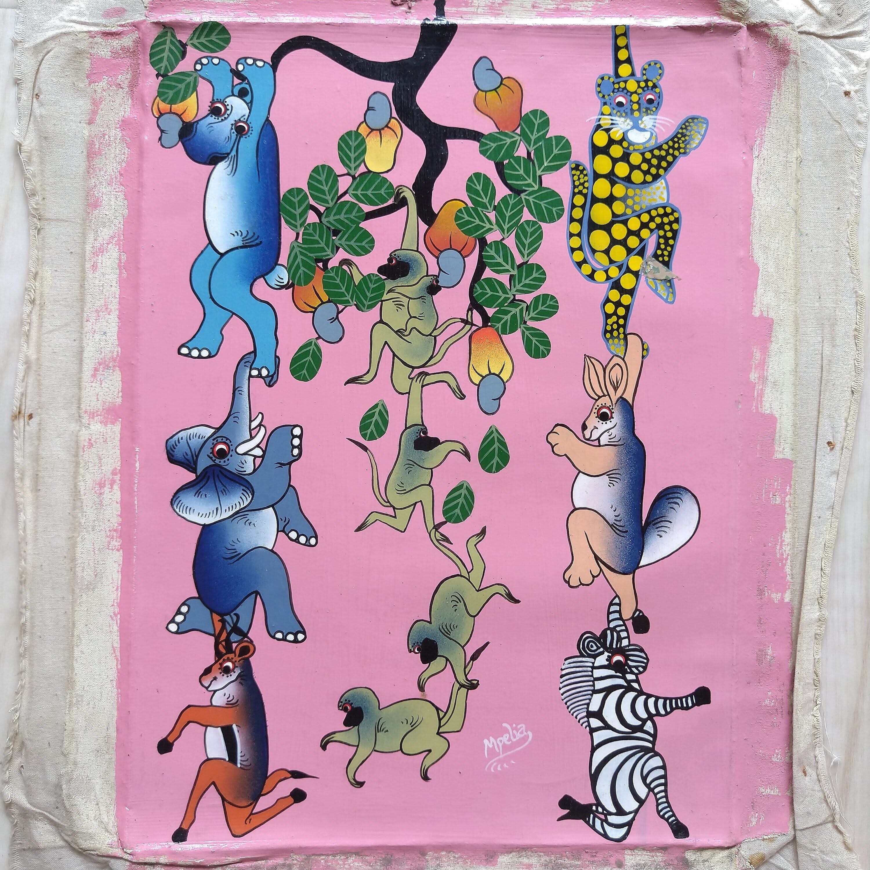 『 Animal chains 』Medium-Tingatinga by Mpelia 32*24cm