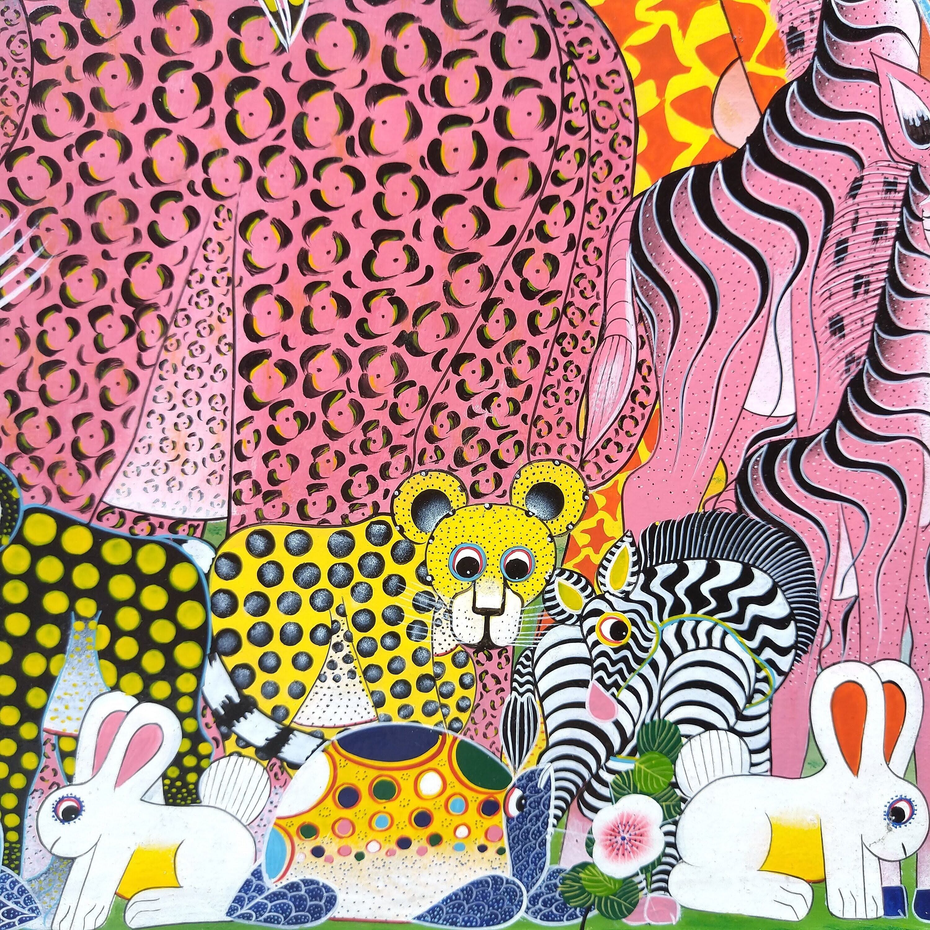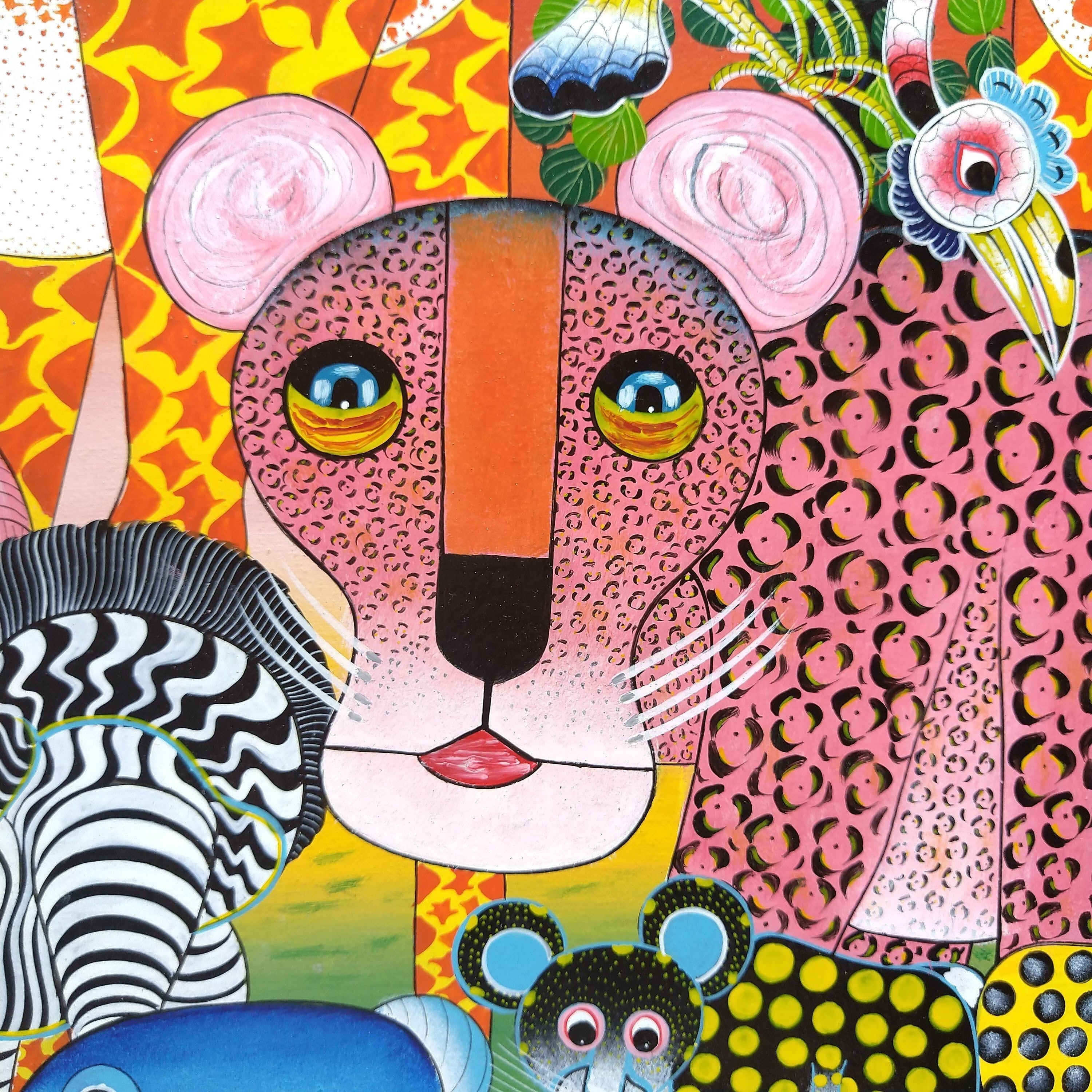 『 Leopard and animals 』Big-Tingatinga by Yaphidu 75*55cm