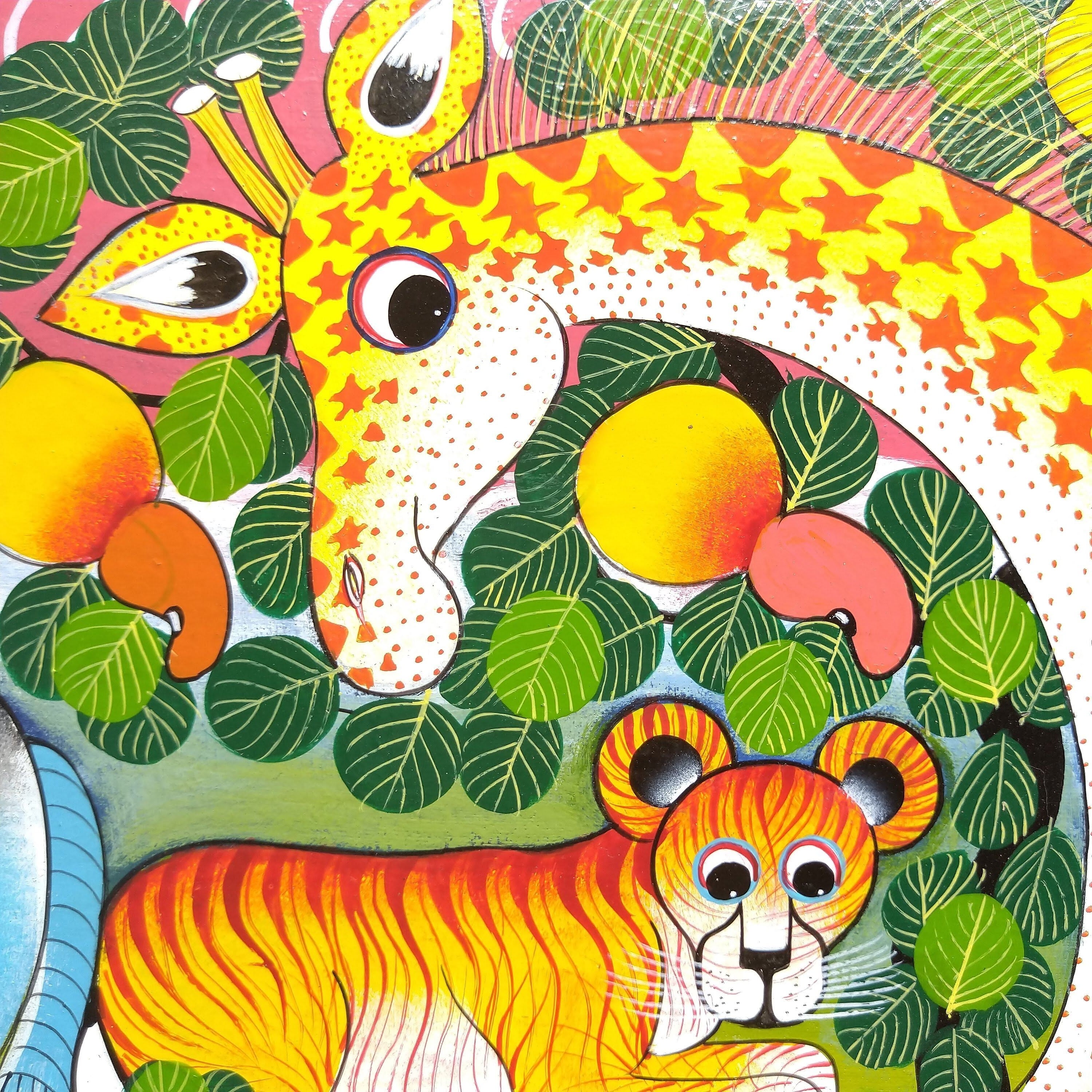 東アフリカ、タンザニアのポップアートです。主にアフリカの動物や植物、人々や風景、精霊などがモチーフとなり、エナメルペンキで描かれています。名前は創始者のエドワード・サイディ・ティンガティンガの名に因んでいます。