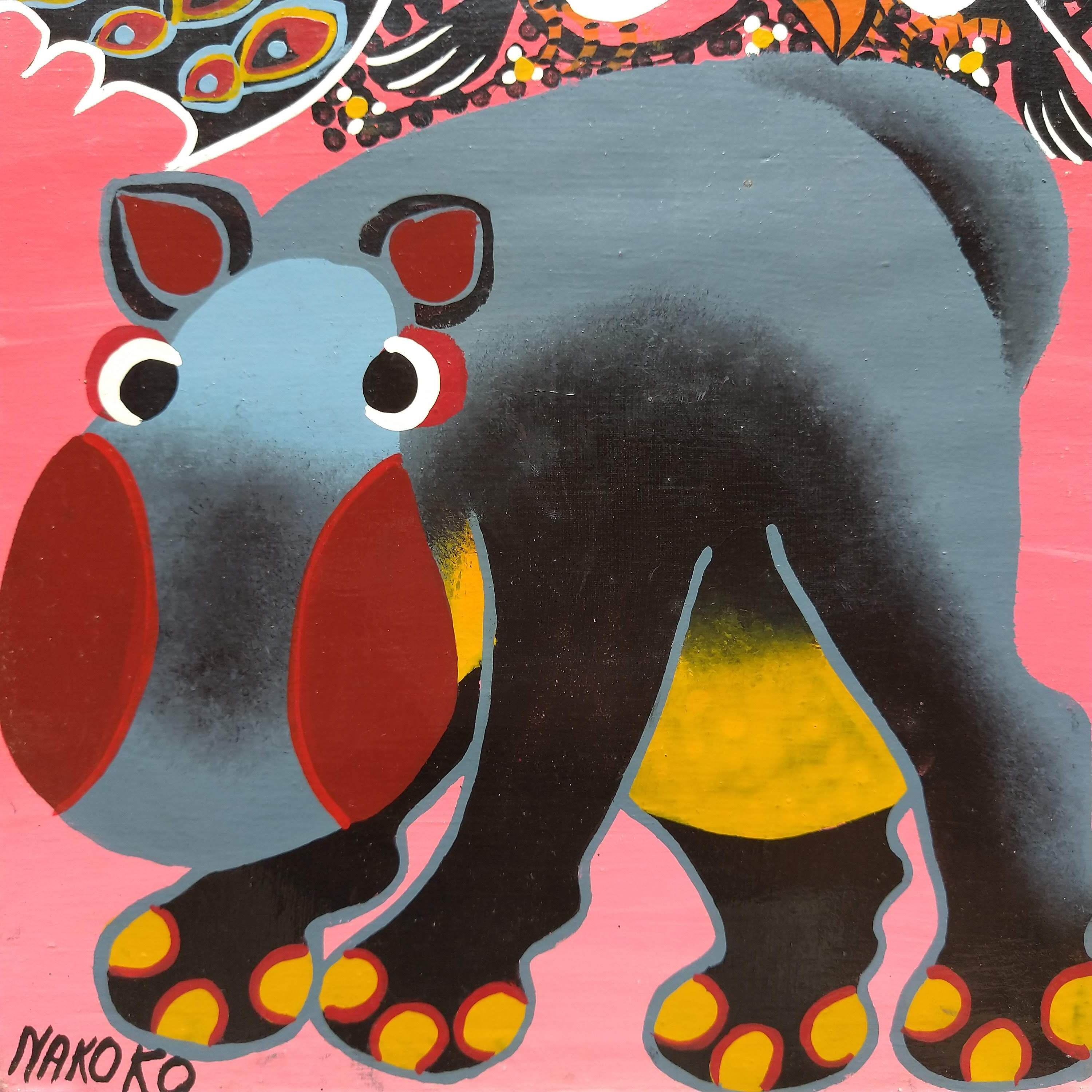 『 Kiboko in pink 』 Medium-Tingatinga by Nakoko 40*30cm