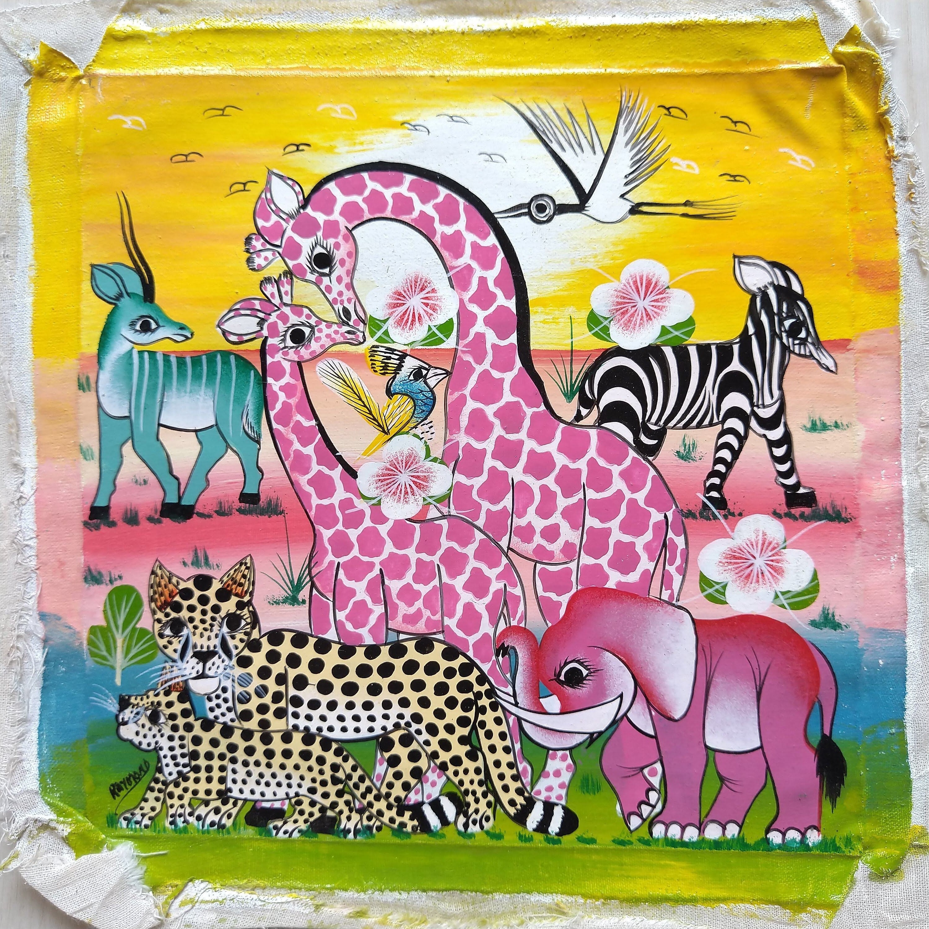 『 Animals / sunset savanna 』Small-Tingatinga by Raymond 20*20cm