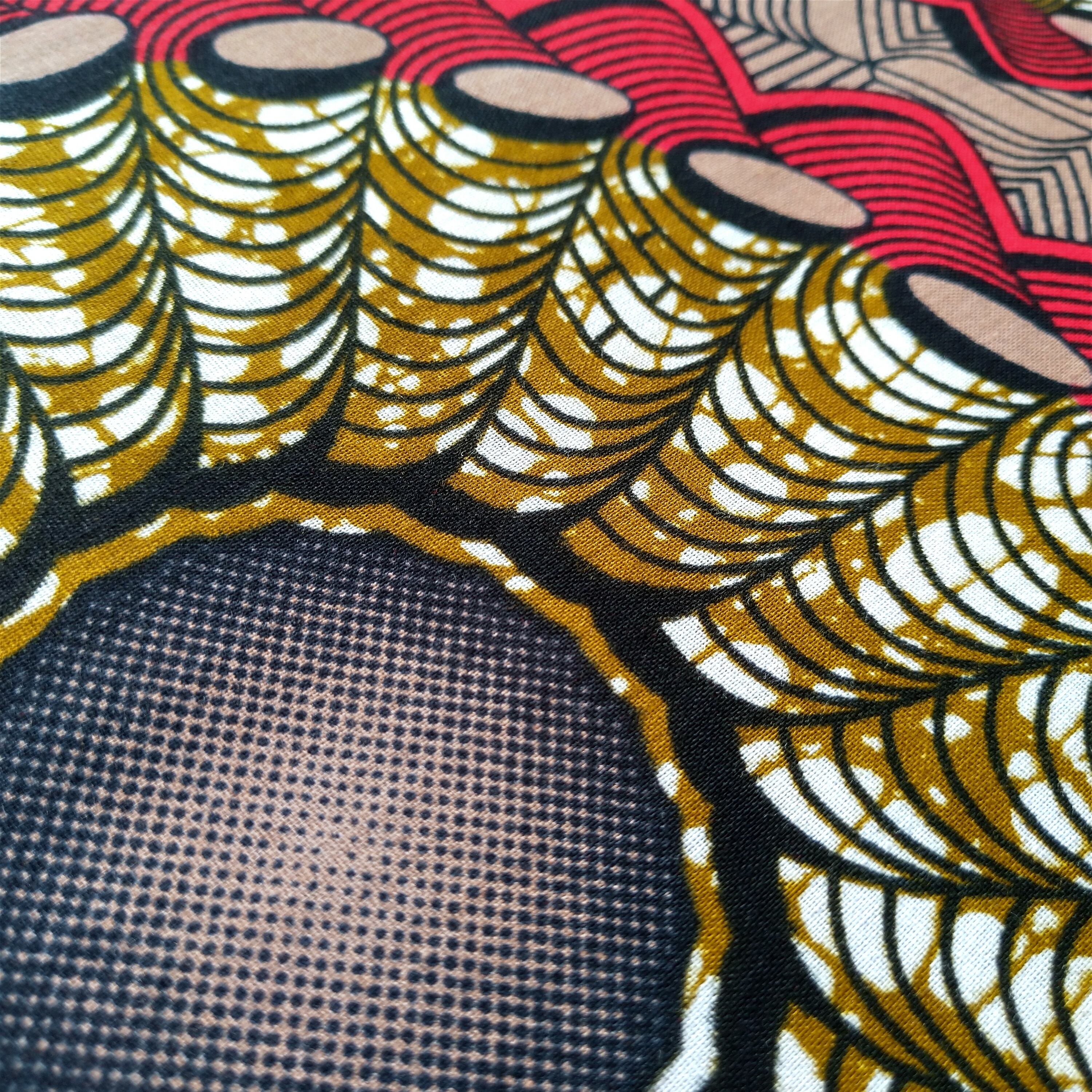 西アフリカ、中央アフリカからタンザニアに輸入されたワックスプリントです。タグ名は”DUANAS PRINTED BY ORIENTAR 100%COTTON 6 YARDS”