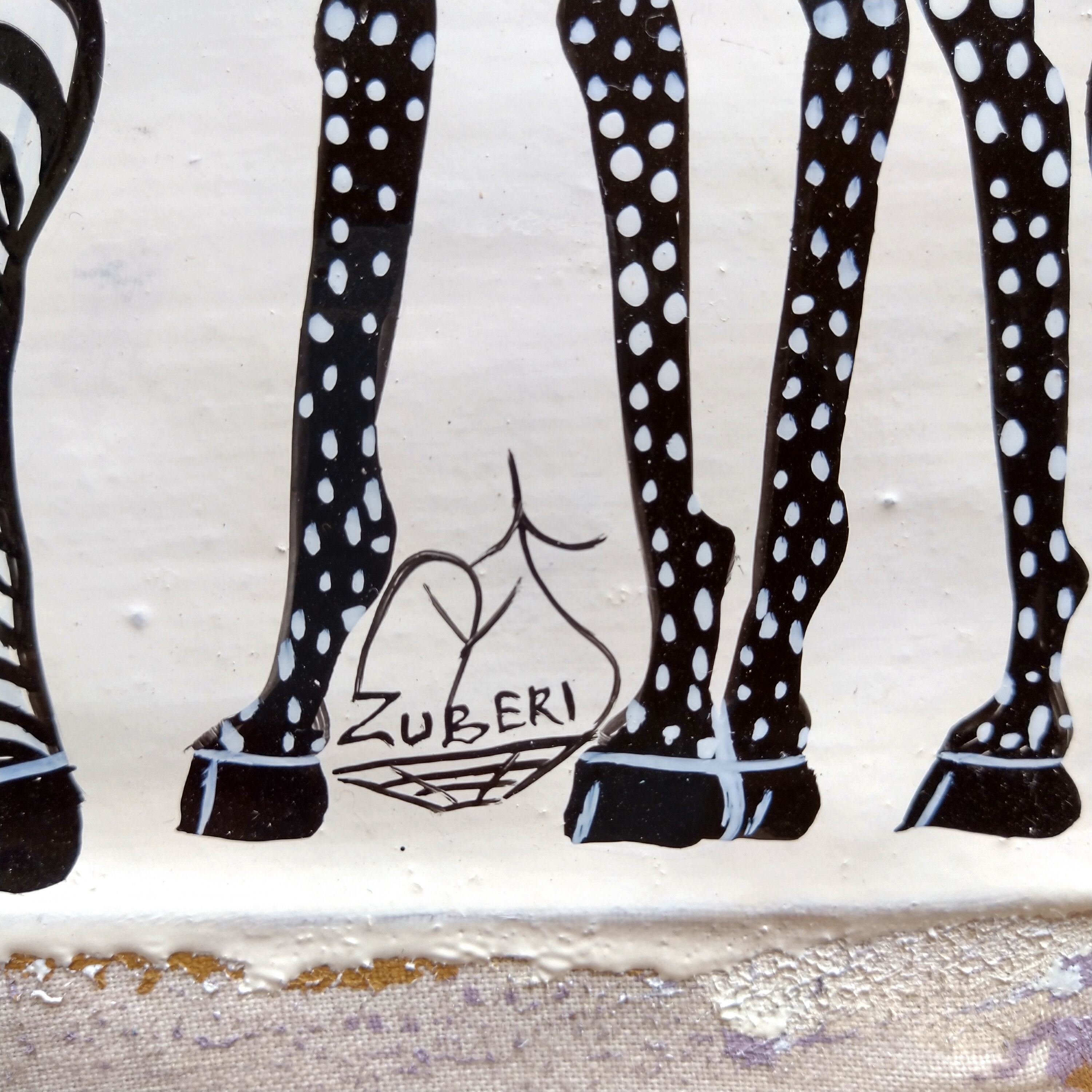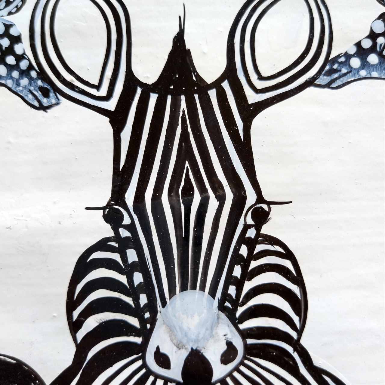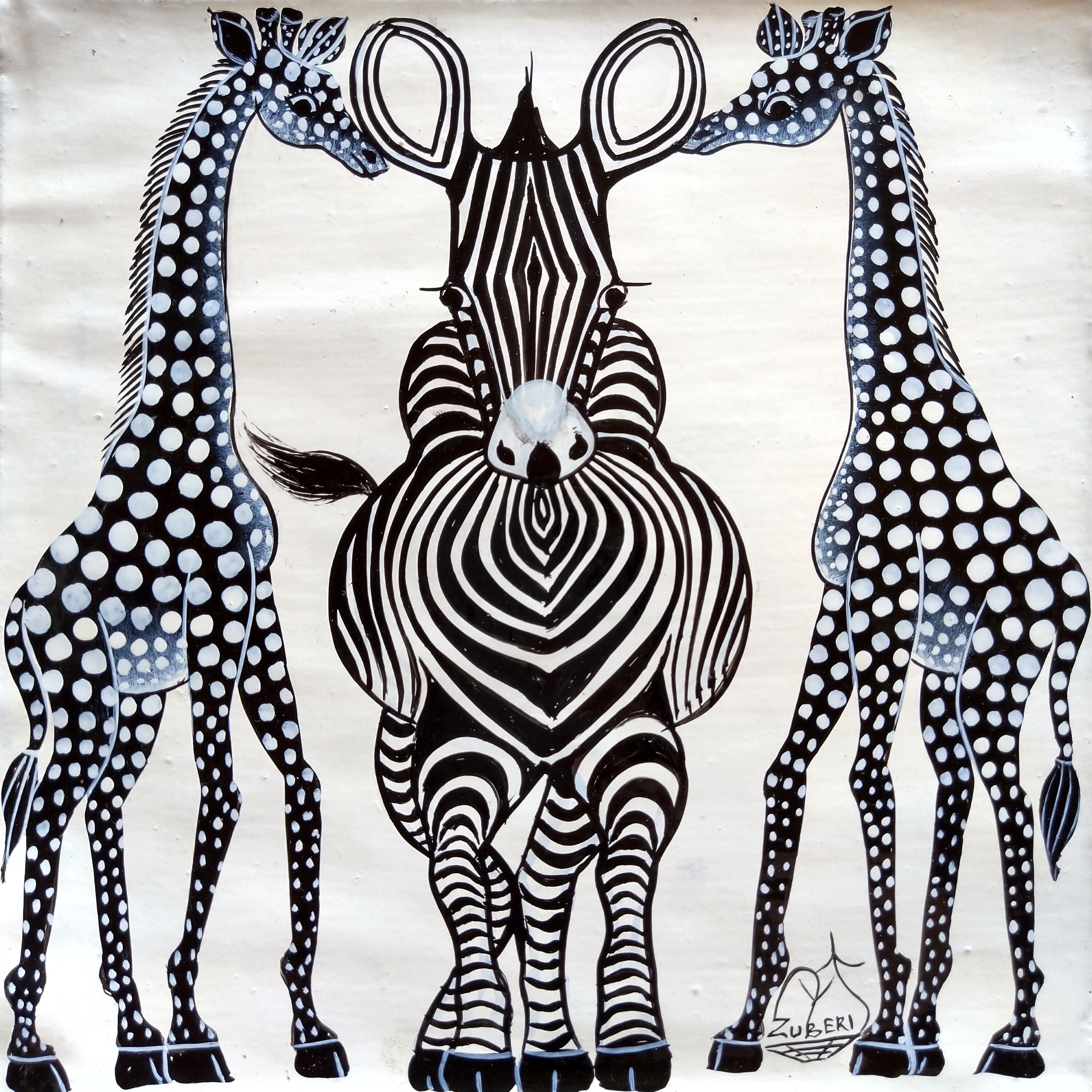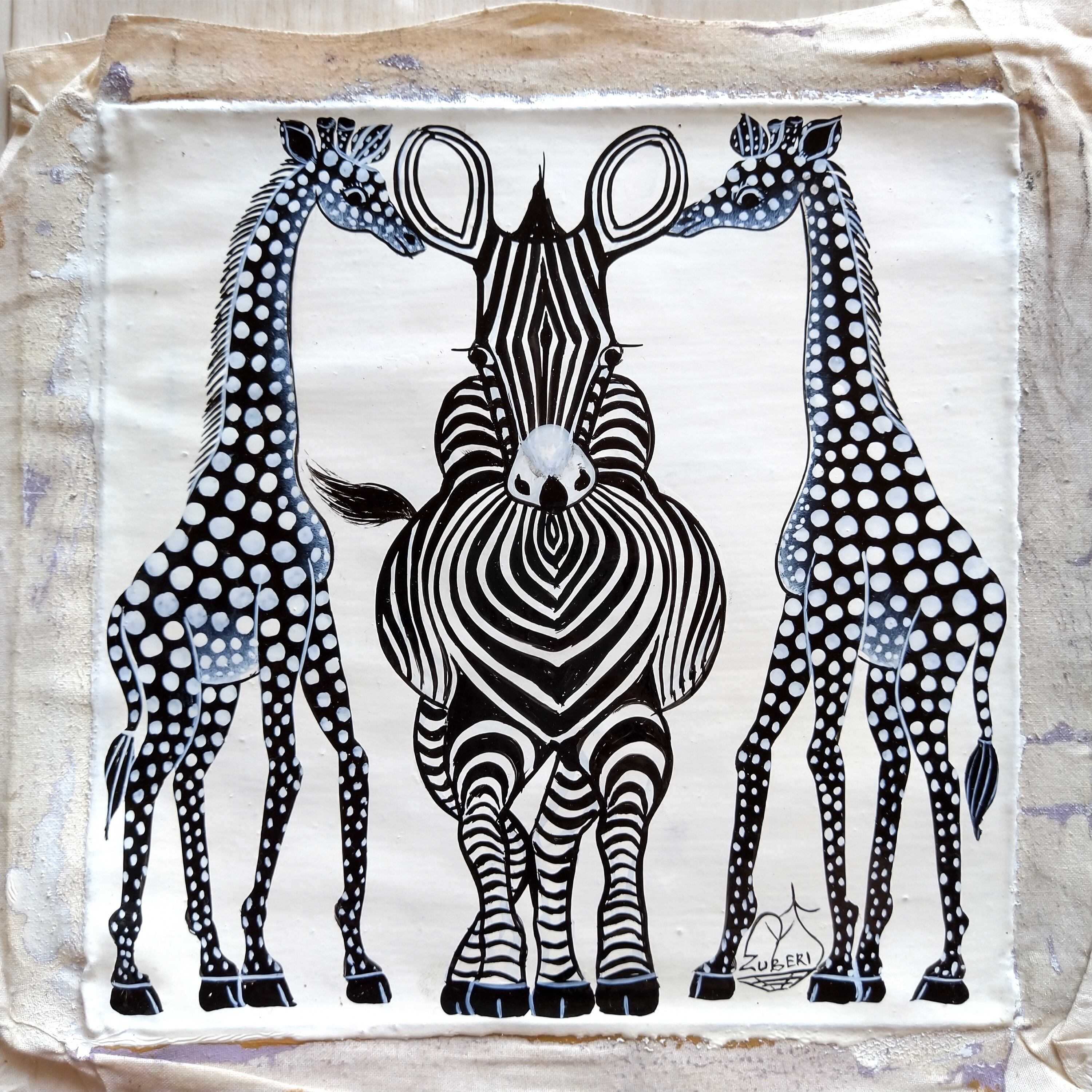 『 Giraffe and zebra B/W 4 』Small-Tingatinga by Zuberi 20*20cm