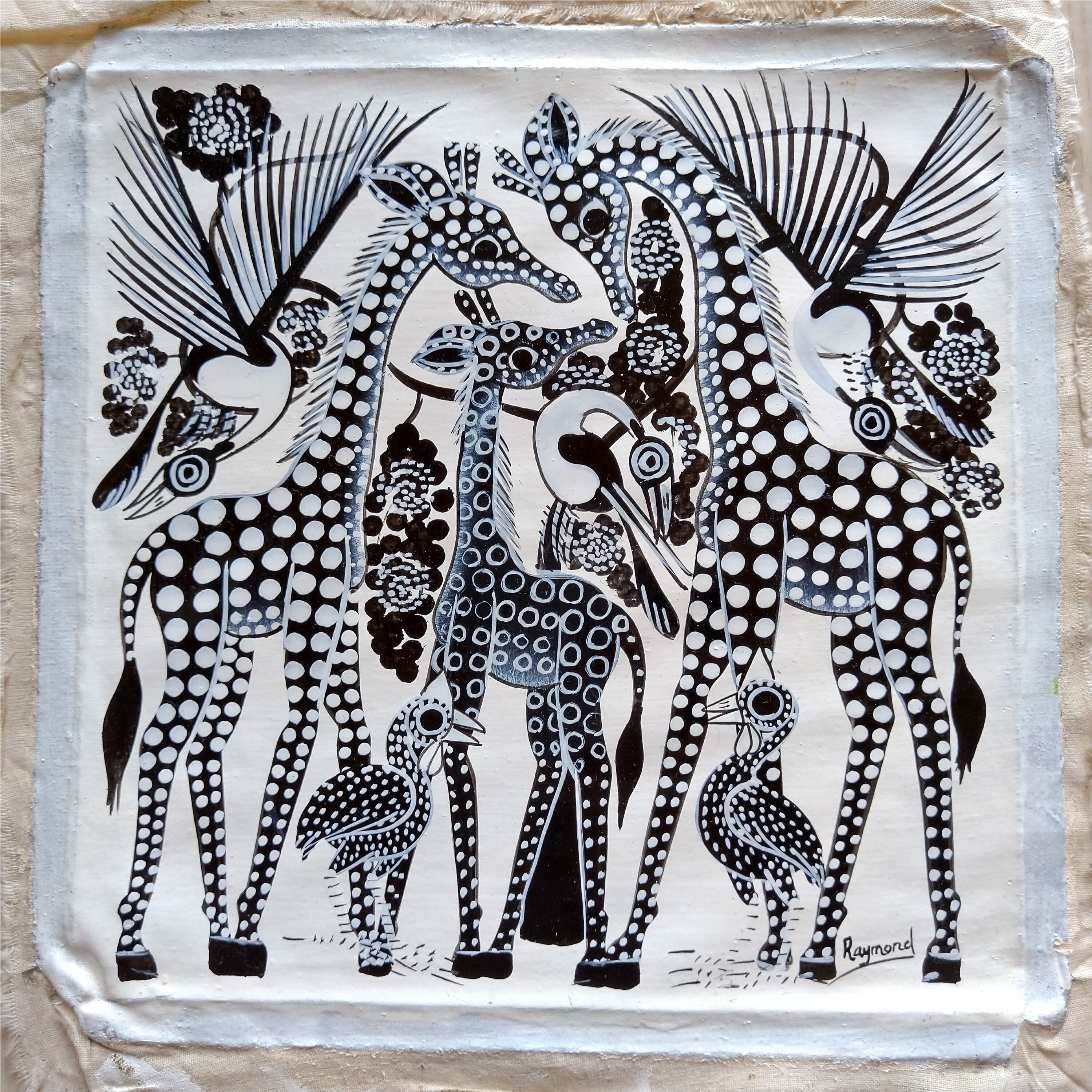 『 Twiga family B/W 2 』Small-Tingatinga by Raymond 20*20cm