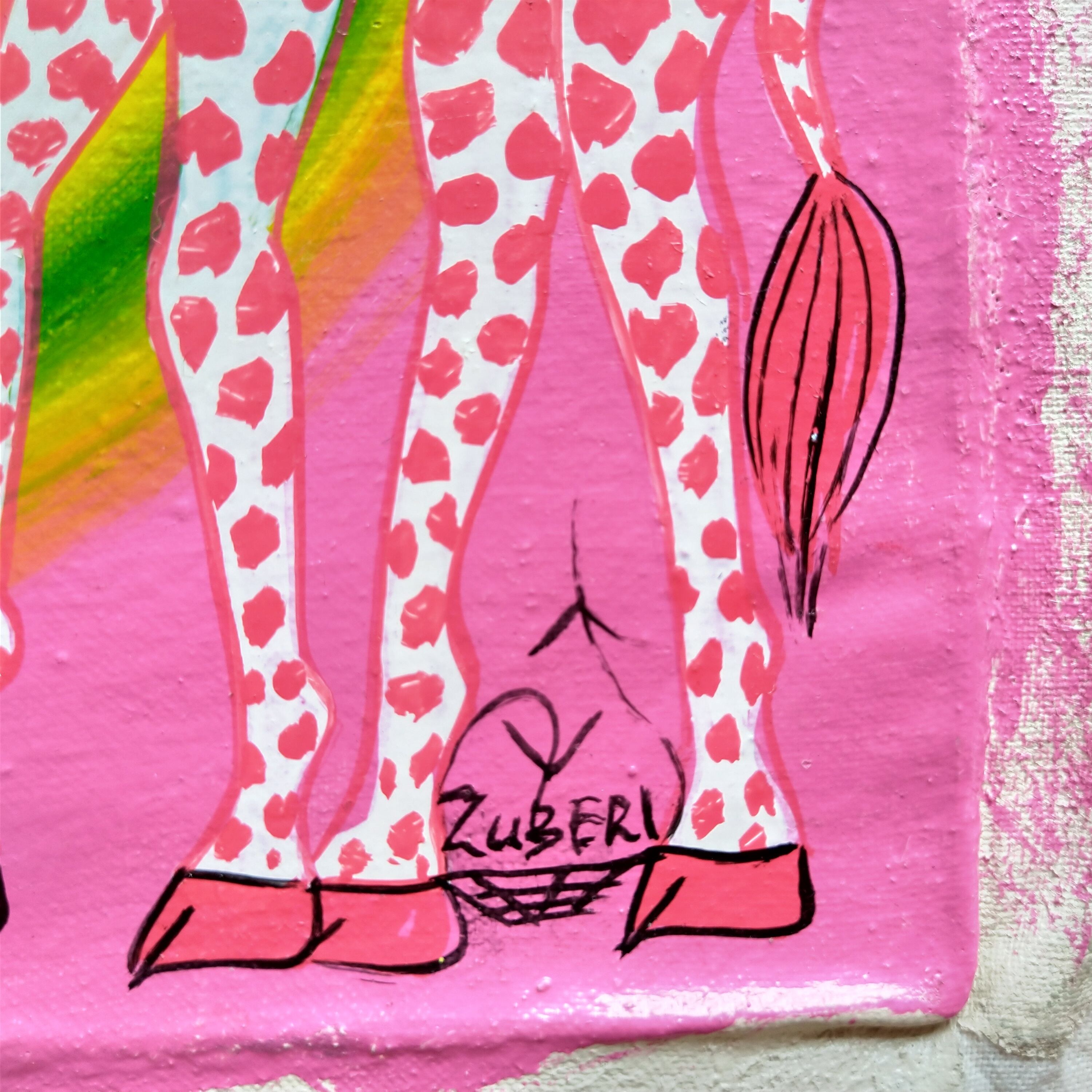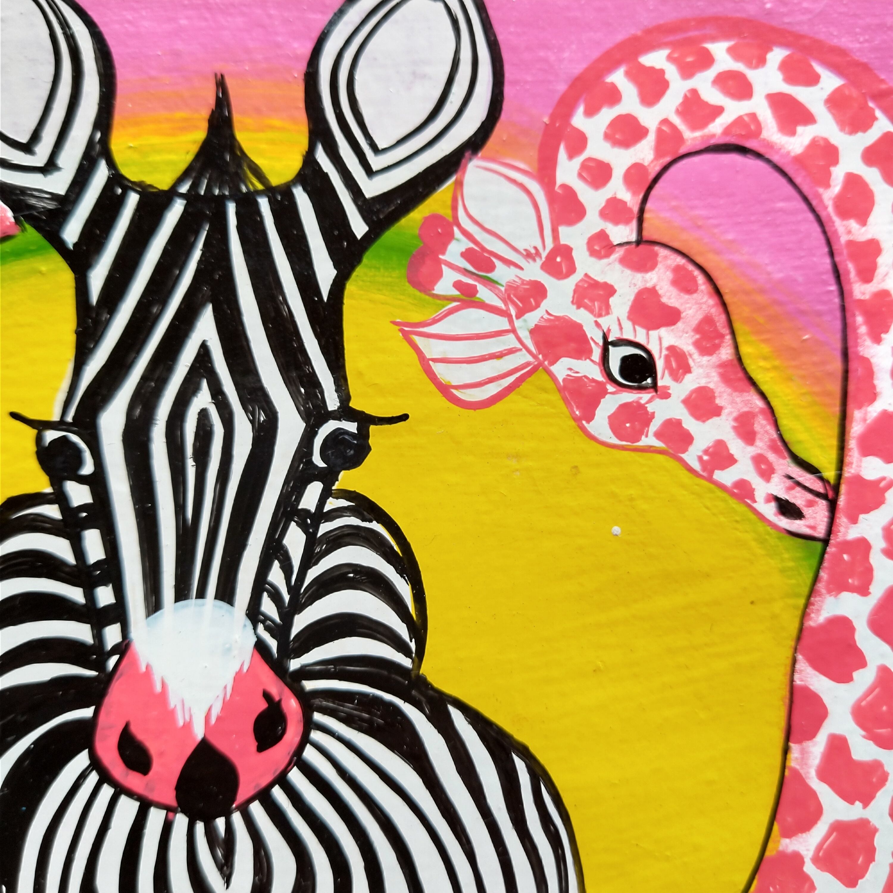 『 Pink giraffs and a zebra 』Small-Tingatinga by Zuberi 20*20cm
