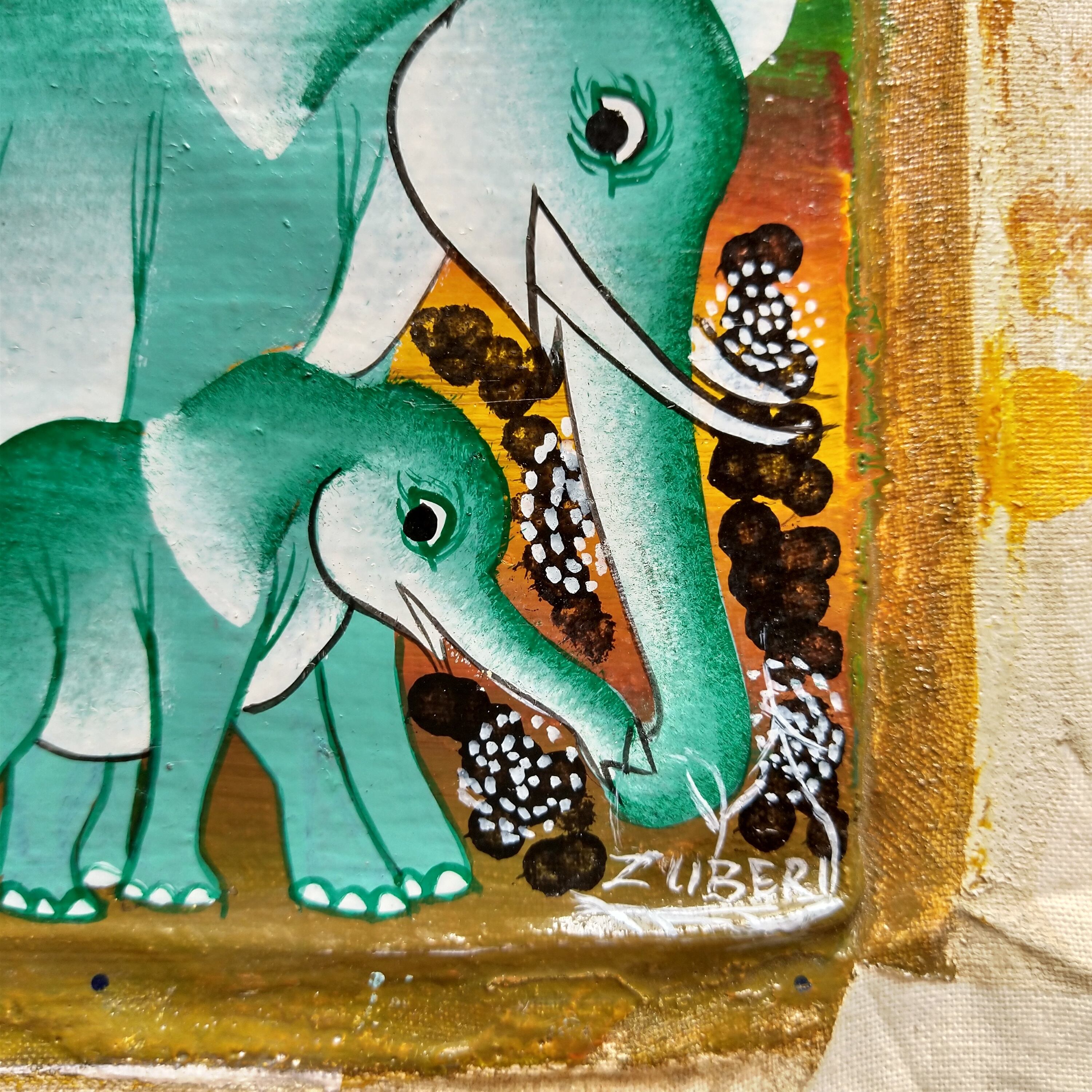 『 Baobab animals -green tembo 』Small-Tingatinga by Zuberi 20*20cm