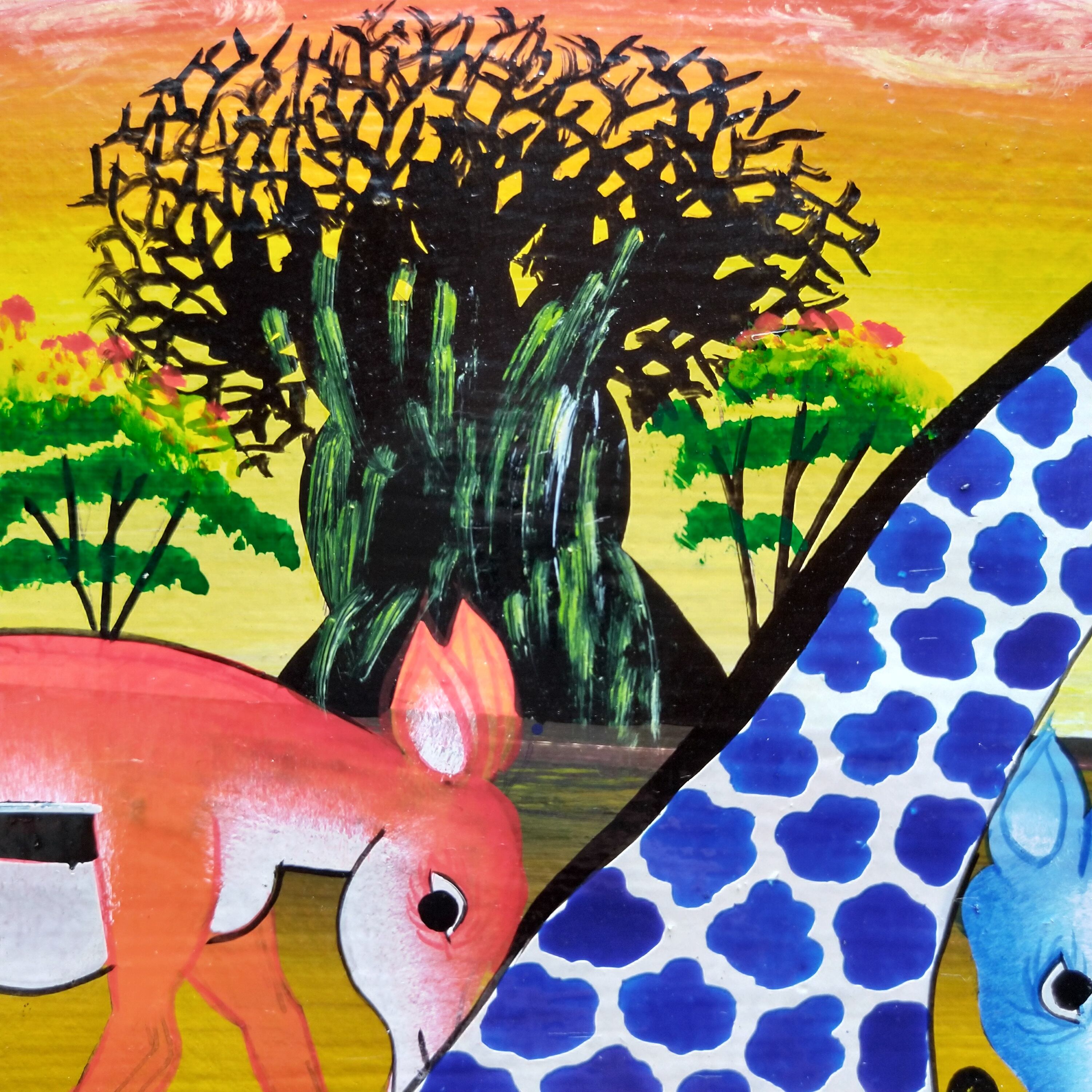 東アフリカ、タンザニアのポップアートです。主にアフリカの動物や植物、人々や風景、精霊などがモチーフとなり、エナメルペンキで描かれています。名前は創始者のエドワード・サイディ・ティンガティンガの名に因んでいます。