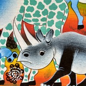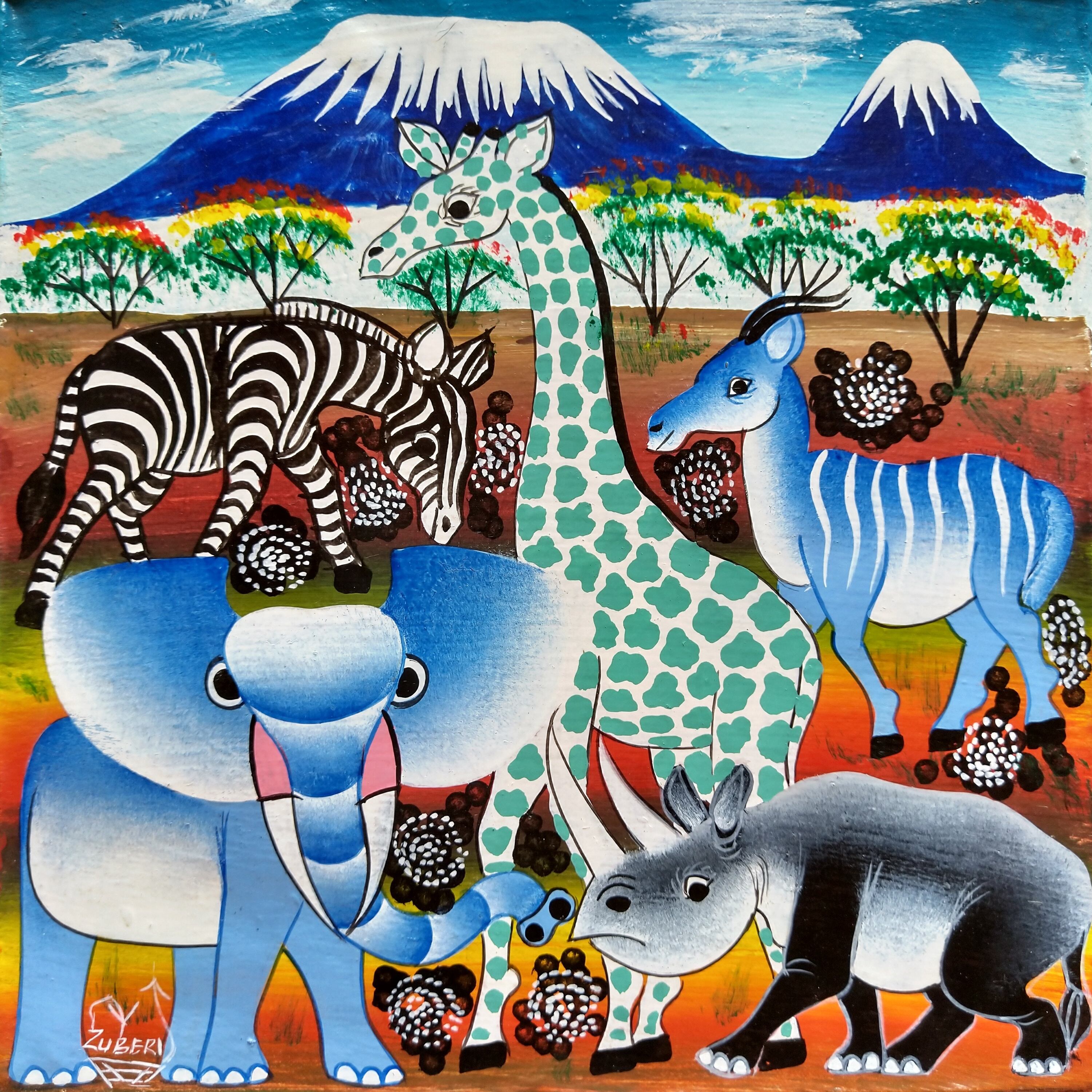 東アフリカ、タンザニアのポップアートです。主にアフリカの動物や植物、人々や風景、精霊などがモチーフとなり、エナメルペンキで描かれています。名前は創始者のエドワード・サイディ・ティンガティンガの名に因んでいます。