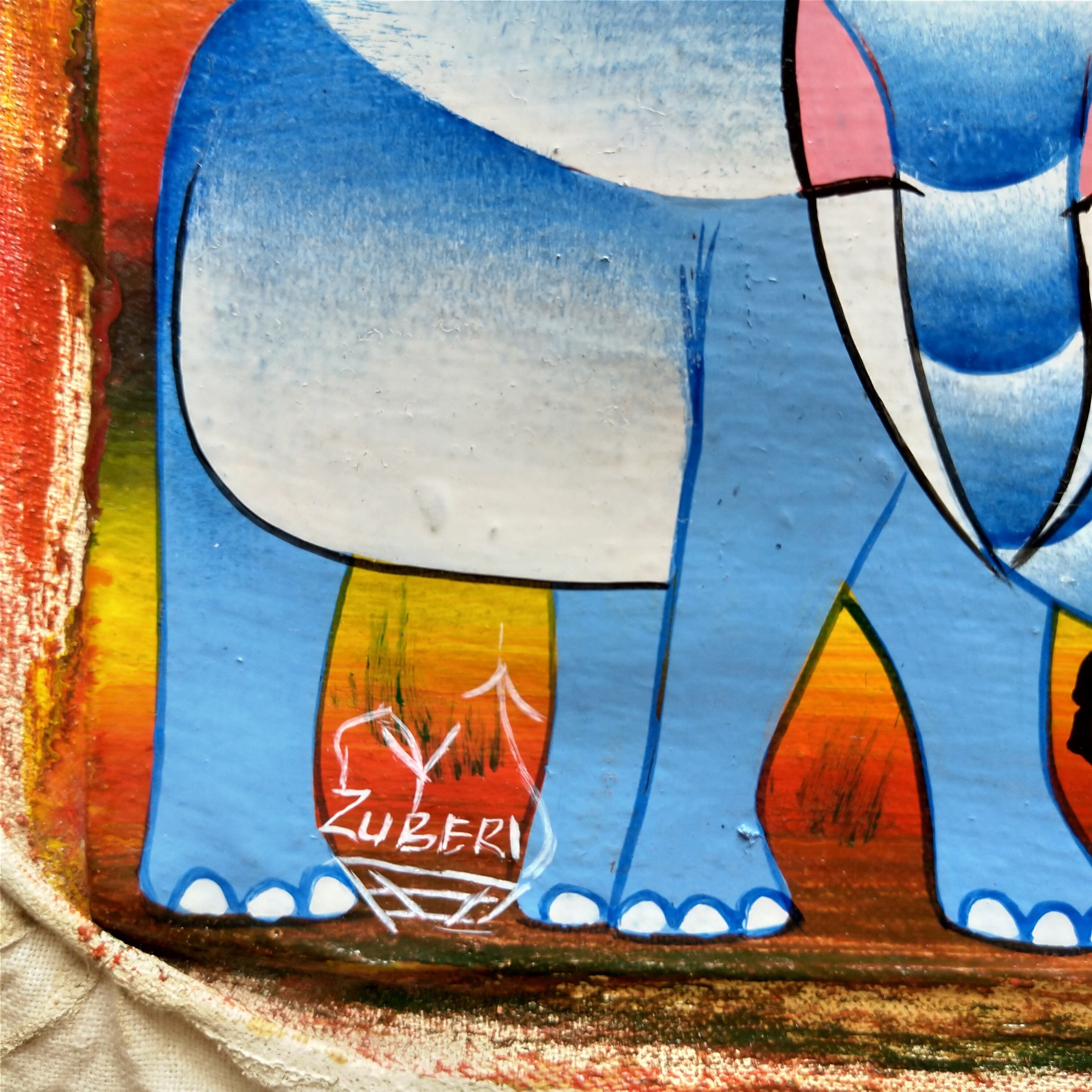 『 Kilimanjaro animals -blue tembo 』Small-Tingatinga by Zuberi 20*20cm