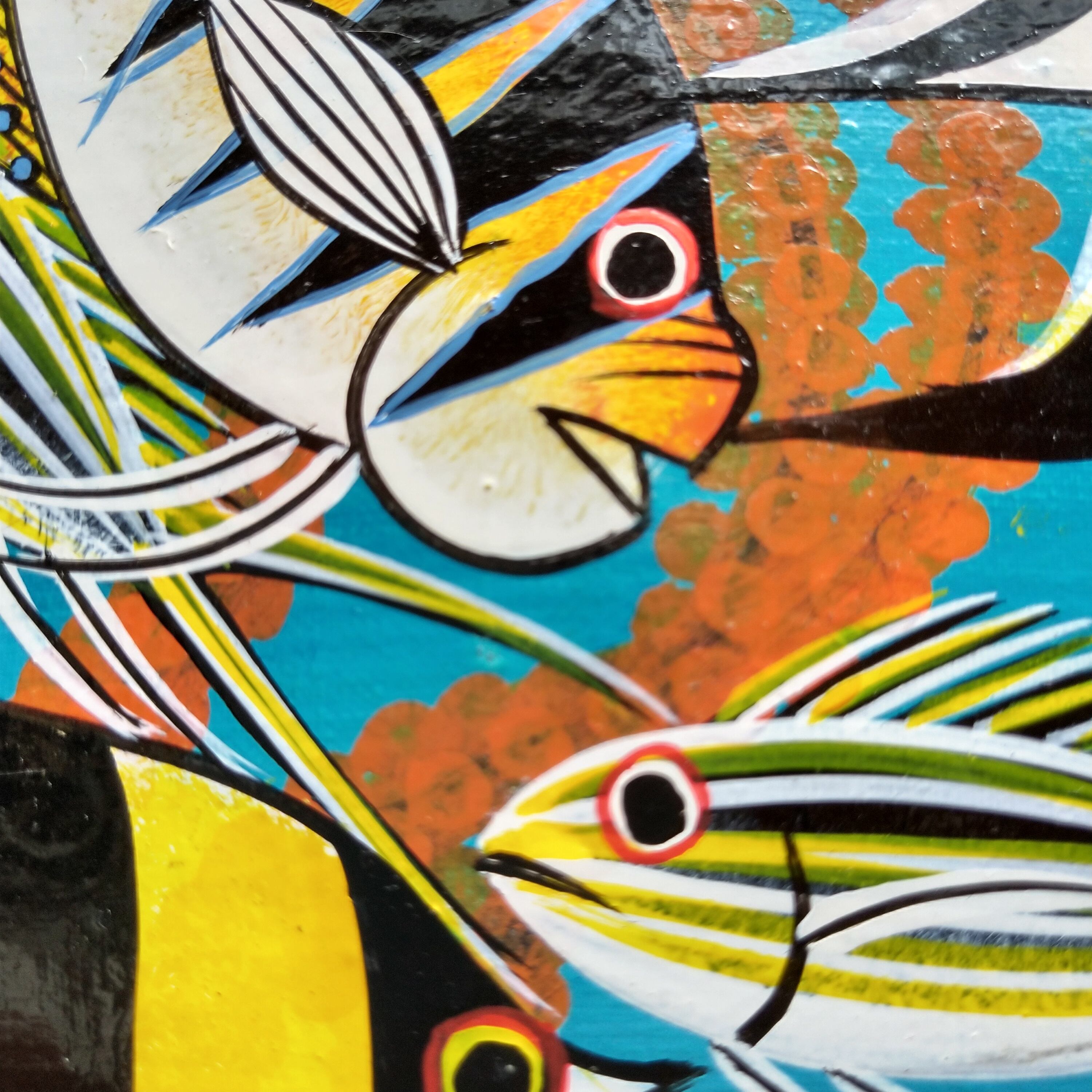 ※ なるべく状態の良いものを仕入れていますが、色ムラ、ペンキの跳ね、ひび割れやしわなどがある場合がございます。赤道直下の太陽の下で創作活動に励む作家たちに思いを馳せて、味わいとして鑑賞していただけると幸いです。